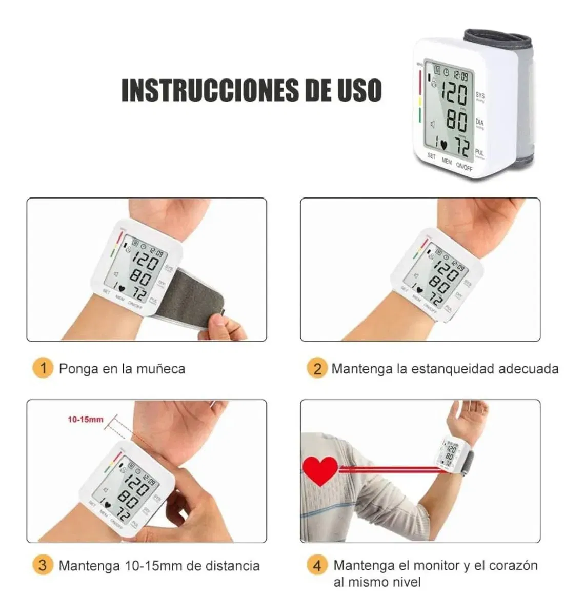 ESTE TENSIÓMETRO DIGITAL DE MUÑECA TIENE 120 MEMORIAS EN DOS GRUPOS DE MEDICIÓN, CON FECHA Y HORA.