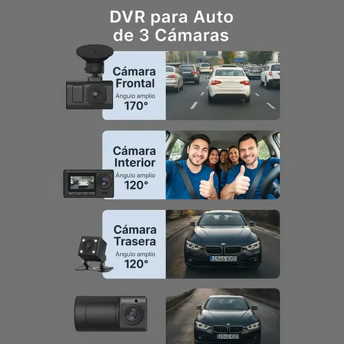 Ideal para choferes de transporte y vehículos particulares: Esta cámara DVR 3 en 1 está pensada para brindar protección total a choferes y pasajeros, registrando todo lo que sucede dentro y fuera del vehículo. Permite grabar incidentes, prevenir robos y brindar tranquilidad a tus pasajeros. Gracias a la app Viidure-Dashcam Viewer, podés revisar grabaciones en tu celular en cualquier momento.