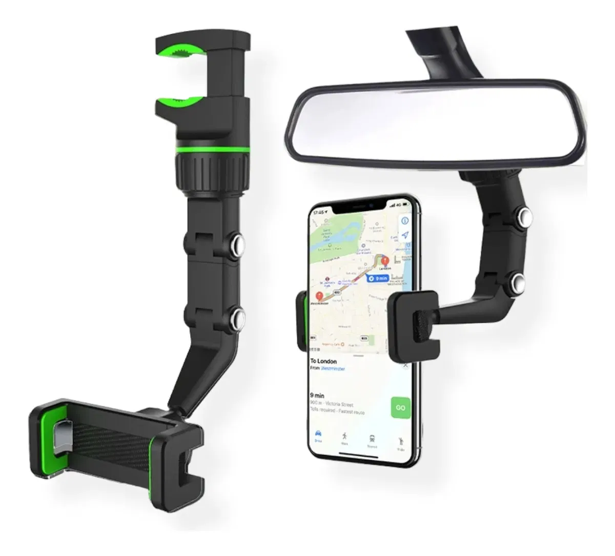 Este soporte de celular para espejo retrovisor es una solución ideal para mantener tu dispositivo a la vista y tus manos en el volante.