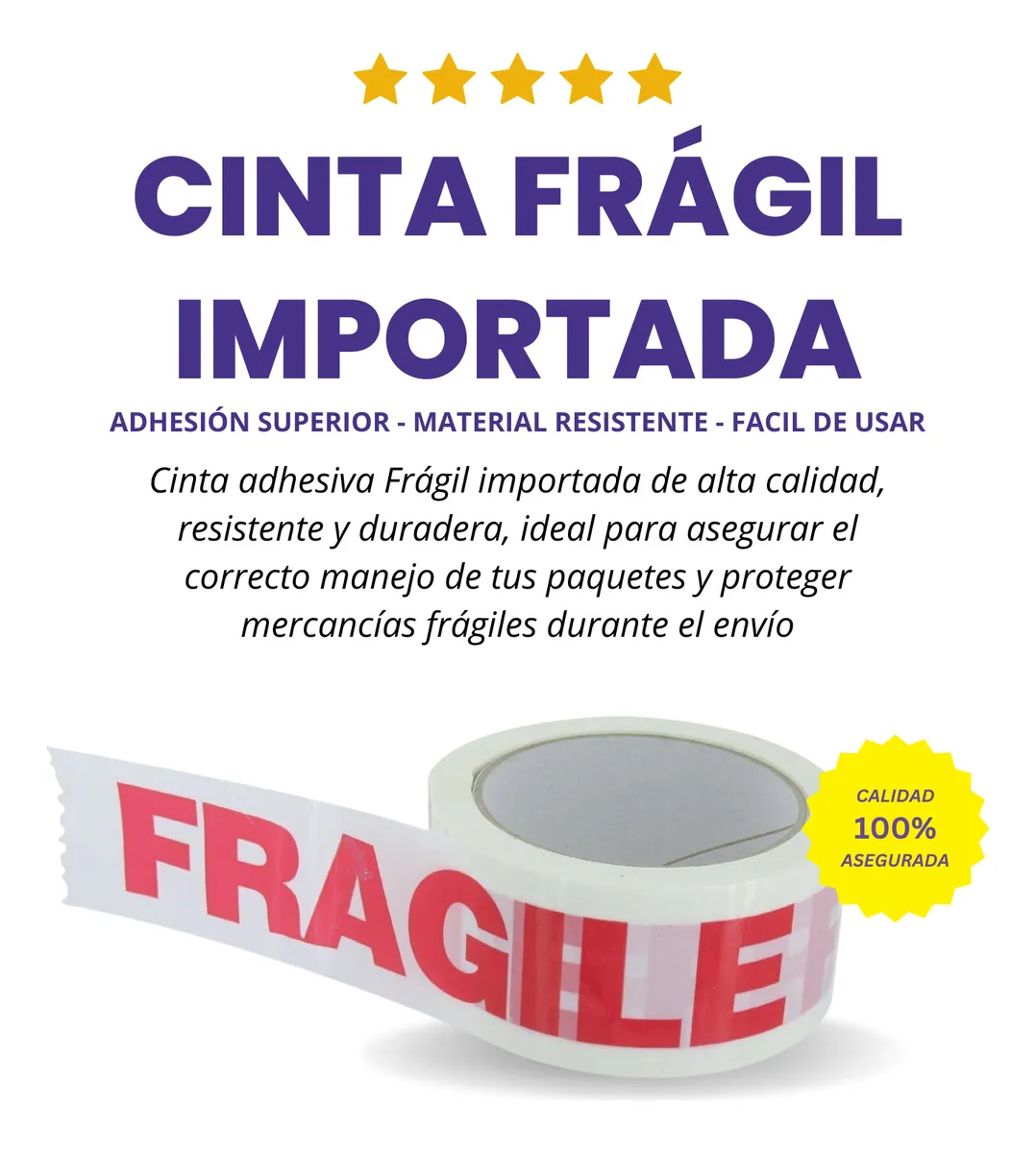 Cinta adhesiva Frágil de polipropileno Blanco de 48 mm de ancho x 100 mts largo-EXCELENTE CALIDAD!!!!