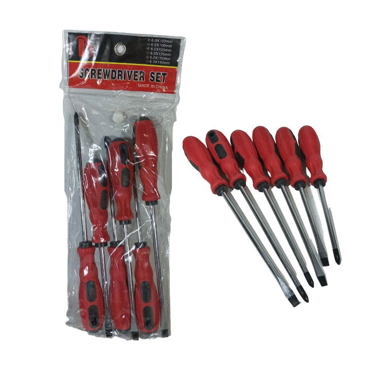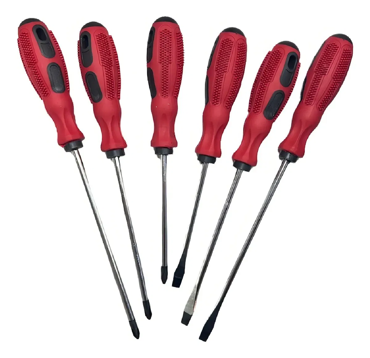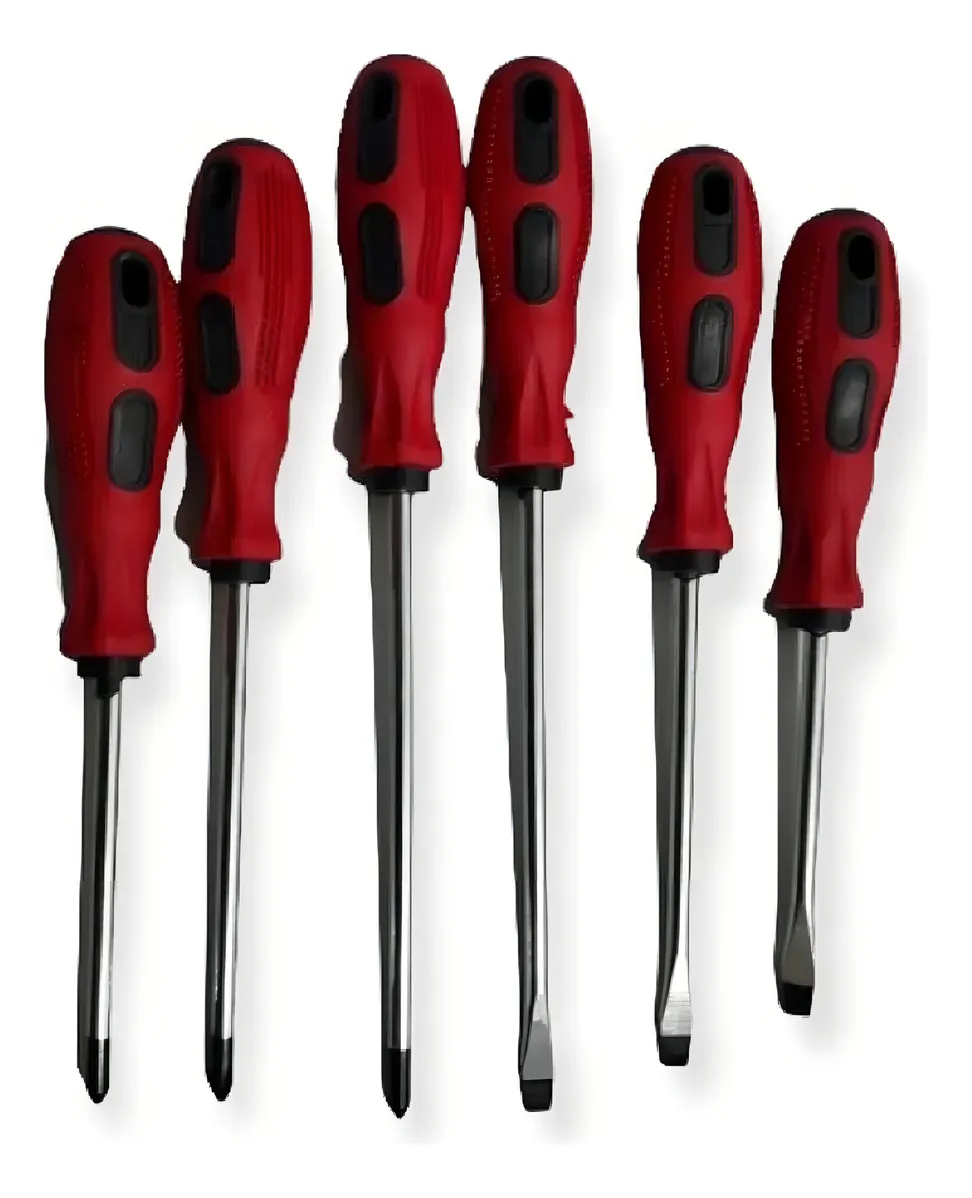 Juego de 6 Destornilladores Mango de Goma Con Punta Imantada 1 Punta Plana 23cm x 6mm 1 Punta Plana 21cm x 6mm 1 Punta Plana 18cm x 6mm 1 Punta Philips 23cm x 6mm 1 Punta Philips 21cm x 6mm 1 Punta Philips 18cm x 6mm