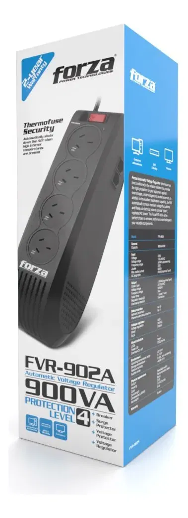 El regulador automático de voltaje Forza (o acondicionador de línea) es la solución fiable que ofrece la protección adecuada contra sobretensiones y caídas de voltaje, ya sea transitorias o prolongadas en la línea de suministro.