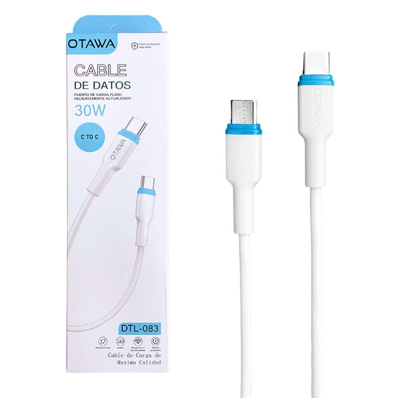 Marca: Otawa Modelo: DTL-083 Apto para todos los modelos con pin tipo c Potencia: 30W Rápida transmisión de datos – Fast data cable Resistente a la alta presión Diseño ergonómico de alta calidad Largo: 1 metro Presentación: Caja