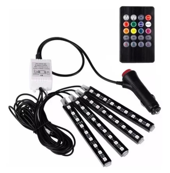 KIT DE ILUMINACIÓN INTERIOR VEHICULOS NAUTICA IP65 16000colores 4 canales RGBW y 3canales RGB Flexible, UV e impermeable, Ultra delgado, LED ALTA POTENCIA 5050 se puede instalar fácilmente en el interior del vehículo camion 12V nautica y es prácticamente invisible, adecuado para todos los vehículos particulares, utilitarios deportivos, camiones 12V, nautica , el mando a distancia 5 metros es por bluetooth, le permite cambiar el modo LED y ajustar el brillo como desee, desde el celular Fácil de instalar, EL KIT INCLUYE: – 4 Barras luminosas RGB 12 LED 5050RGB x tira Flexibles Autoadhesivas – Sensor bluetooth 4.0 Android 4.4 iOS10.0 – Voltaje 12V -Manual de instrucciones para su instalación y funcionamiento -resistente al agua IP65