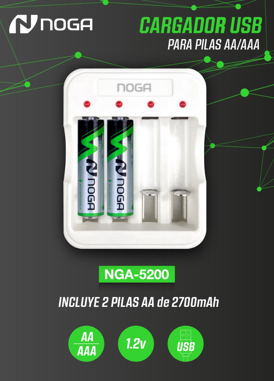 Descubre el cargador Noga NGA-5100, una solución eficiente y versátil para mantener tus pilas recargables siempre listas. Diseñado para pilas AA y AAA, este cargador es compatible con baterías de Ni-Cd y NiMH, asegurando un rendimiento óptimo en todos tus dispositivos.