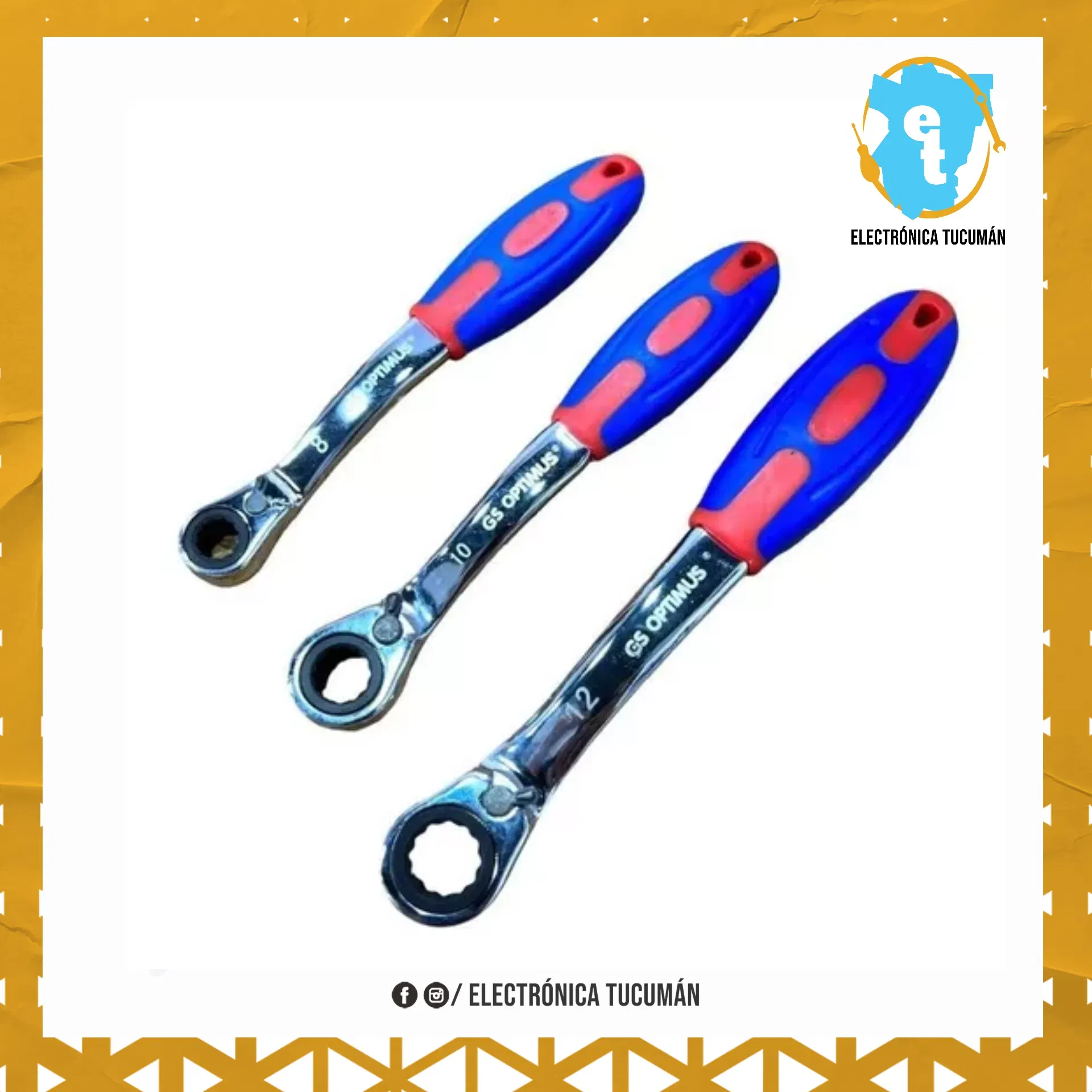SET DE 7 LLAVES COMBINADAS CON CRIQUET 8 - 19mm: * INCLUYE Estuche Contenedor Plástico. * Manivela tipo Criquet. * Palanca Inversora de Giro. * Mango Anti-Deslizante Recubierto en Goma. * Medidas: 8mm - 10mm - 12mm - 13mm - 14mm - 17mm - 19mm. Las imágenes son ilustrativas, el producto puede tener variaciones dependiendo del distribuidor/marca sin afectar las funciones y calidad del mismo.