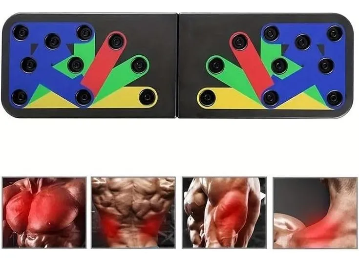 Un tablero de flexiones, también conocido como soporte para flexiones o base para flexiones, es un accesorio de fitness diseñado para mejorar la efectividad y variedad de los ejercicios de flexiones. Consiste en una plataforma o tablero resistente con múltiples opciones de colocación de manos y posiblemente otras características para apuntar a grupos musculares específicos. 1. Tablero o Plataforma: La parte principal del tablero de flexiones es una plataforma plana y duradera hecha de plástico, goma u otros materiales resistentes. Proporciona estabilidad y soporte durante los ejercicios de flexiones. 2. Zonas de Colocación de Manos: Los tableros de flexiones suelen tener múltiples zonas o ranuras donde puedes colocar tus manos. Estas zonas están marcadas con diferentes colores o etiquetas para indicar los músculos específicos que se trabajan con cada colocación de manos. Por ejemplo, puede haber zonas para trabajar el pecho, los hombros, los tríceps o una combinación de grupos musculares. 3. Diseño Ergonómico: Los tableros de flexiones están diseñados para promover la forma correcta y la alineación de las muñecas durante las flexiones. Pueden contar con mangos inclinados o texturizados que proporcionan un agarre cómodo y reducen la tensión en las muñecas.