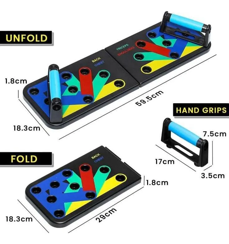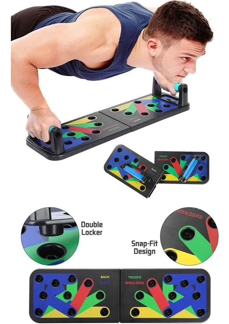 - El equipo de fitness adopta un diseño integrado, que es conveniente de llevar y más estable, para que puedas ejercitarte en cualquier momento y lugar. Sistema de Tablero Codificado por Colores: Las posiciones de flexiones de múltiples colores fáciles de seguir apuntan a músculos específicos (pecho, hombros, espalda, tríceps) y promueven la forma adecuada.