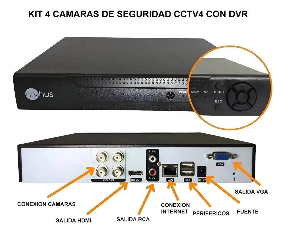 DVR con disco duro de 1TB incluido (varios días de grabación continua)