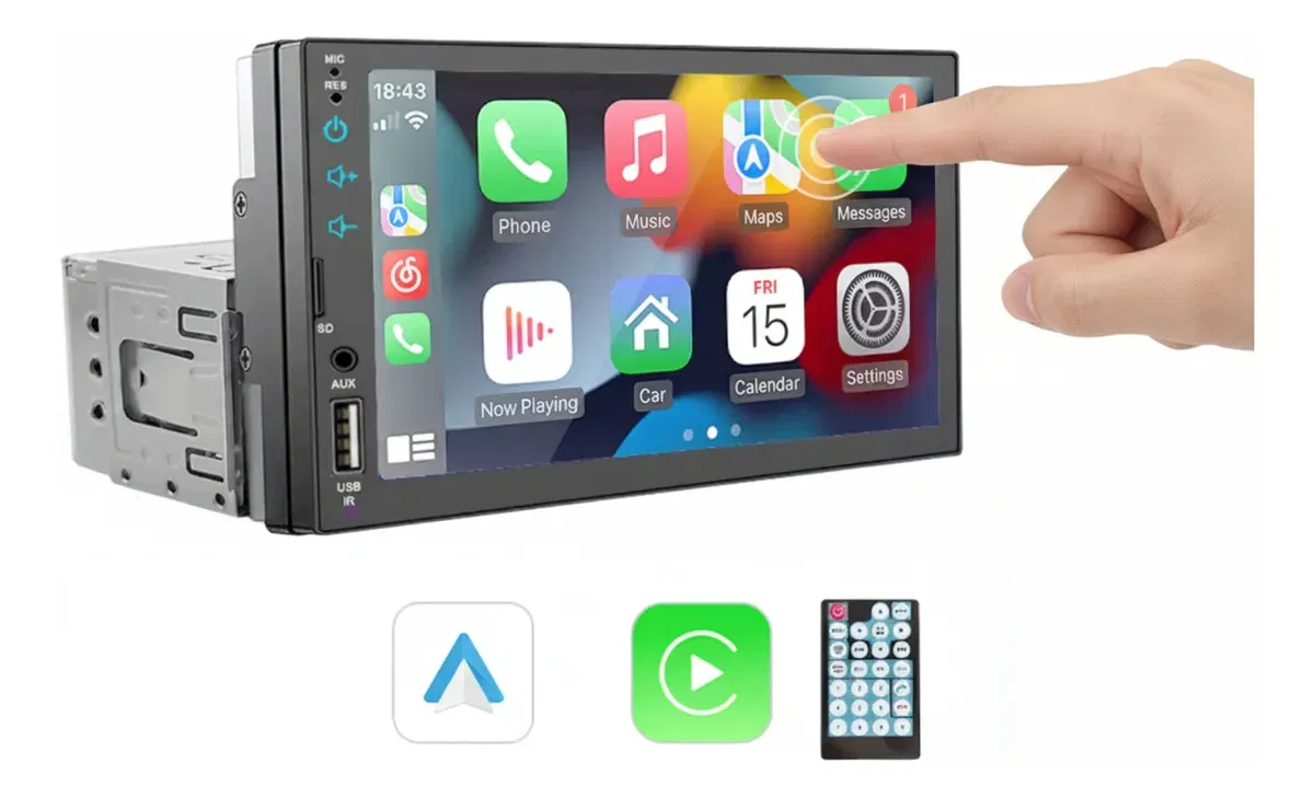 Características Principales: Pantalla Táctil de 7 pulgadas: Disfruta de una interfaz intuitiva y fácil de usar. CarPlay Con Cable : Conecta tu iPhone con cable de datos para acceder a mapas, música, mensajes y más. Android Auto (con cable): Utiliza tu dispositivo Android conectándolo por cable para navegar, escuchar música y gestionar tus aplicaciones favoritas de forma segura. Mirrorlink: Duplica la pantalla de tu smartphone (Android o iOS) directamente en la radio del coche Mediante Cable USB de Datos Entrada para Cámara Trasera: Conecta una cámara de visión trasera para facilitar el aparcamiento y mejorar la seguridad. Especificaciones Técnicas Bluetooth 4.0: Compatible con perfil de distribución de audio avanzado. Función de visualización de hora: Muestra la hora cuando la radio está apagada. Radio Estéreo FM Digital de Alta Calidad: 18 emisoras preestablecidas. Rango de frecuencia: 87.5 - 108 MHz. Soporte para Lector de Tarjetas USB / SD / MMC: Reproduce contenido desde diferentes medios de almacenamiento. Soporte de Audio: Compatible con formatos MP3 / WMA / APE / FLAC / WAV, entre otros. Función de Carpeta: Organiza y reproduce tu música por carpetas. Soporte de Puntos de Interrupción y Reproducción ID3: Retoma la reproducción donde la dejaste y muestra la información de la pista. Control Remoto: Incluye un control remoto para mayor comodidad. Control de Volumen Rotatorio. Potencia 60w x 4 Reproducción Aleatoria de MP3: Con opción de avanzar/retroceder 10 pistas. Control Electrónico de Volumen: Ajuste de agudos, graves, balance y fader. Selección de Múltiples Escenas EQ: Modos de ecualización preestablecidos como Jazz, Rock, Pop, Clásico, etc. Control de Silencio (Mute) y Loudness. Salidas de Audio RCA L/R: Jacks para salida de audio. Alta Potencia de 4 Canales: (Para 4 altavoces). Modos Soportados: BT / APE / WAV / WMA / MP3 / FM. Batería del Control Remoto (no incluida): CR2025 3V. Fuente de Alimentación: 11 - 16V. Frecuencia del Transmisor: 2468MHz (Posiblemente para la cámara trasera inalámbrica, si aplica). Potencia del Transmisor: 100mW. Entrada / Salida de Video: Señal de video compuesto PAL / NTSC. Temperatura de Trabajo: -20 a 70 grados Celsius. Sensibilidad del Receptor: -93dbm. Voltaje de Entrada: 12V.