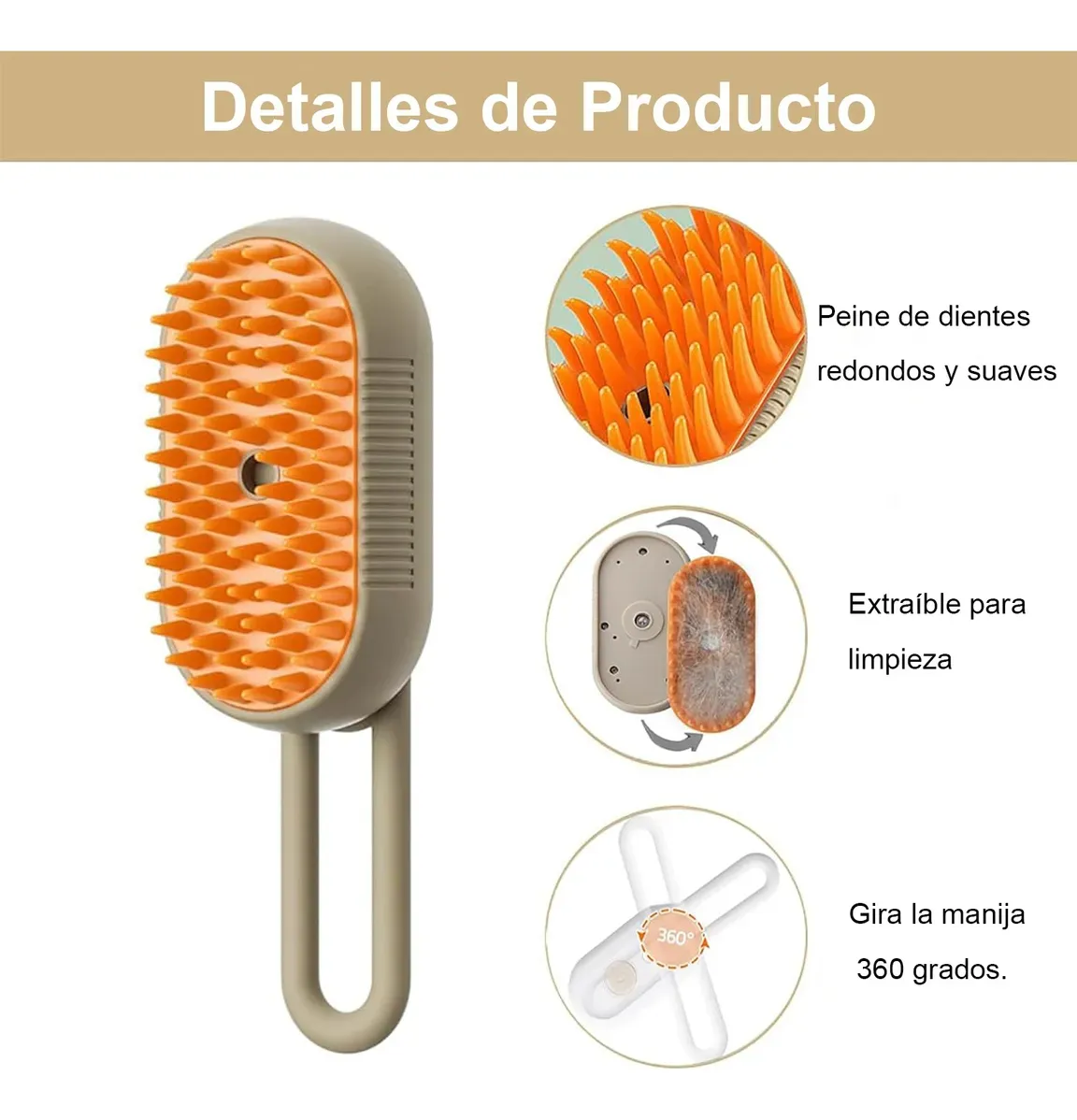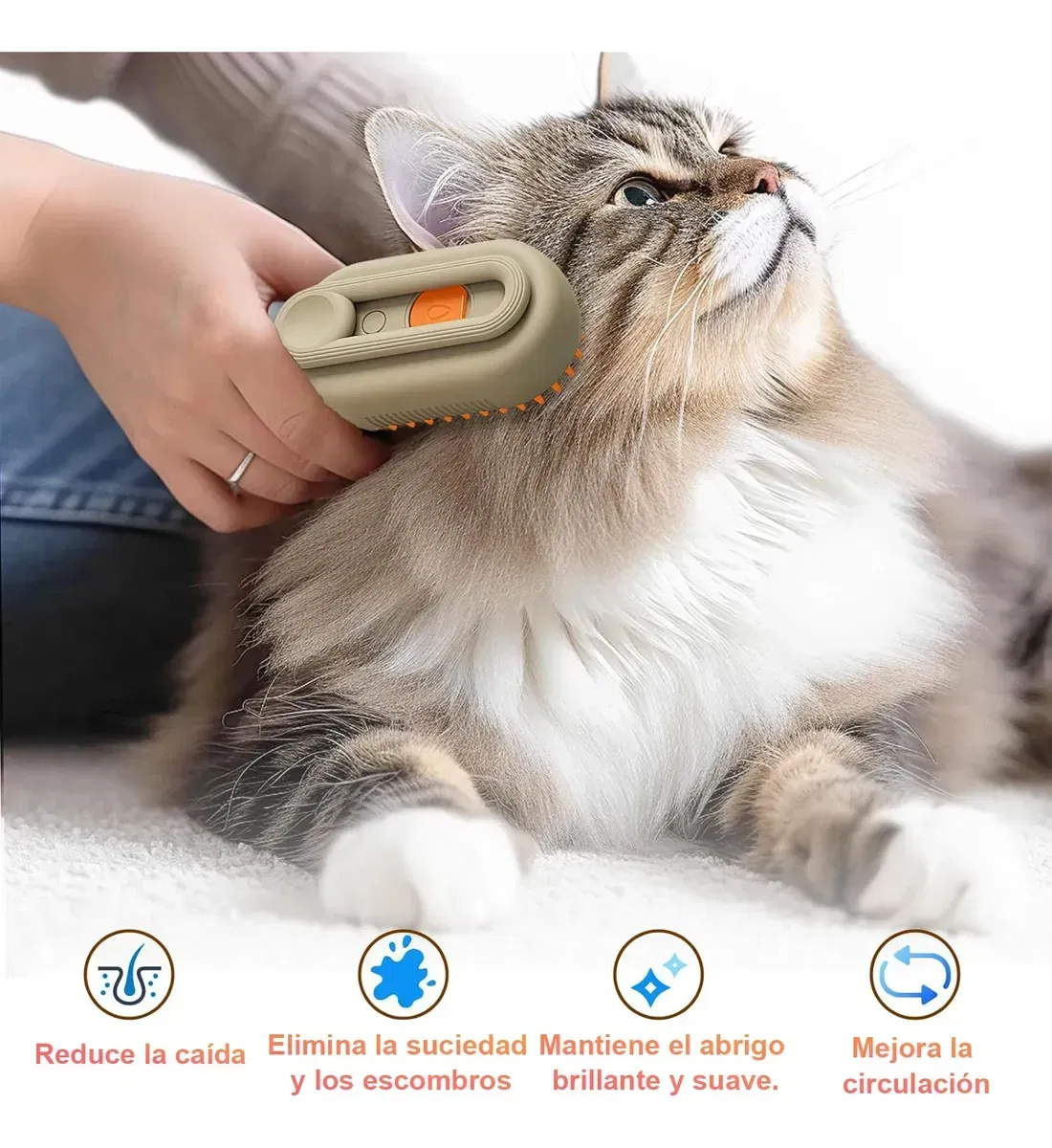 este cepillo de vapor 3 en 1 para gatos y perros es un complemento versátil para tu rutina de cuidado de mascotas. Puede atraer eficazmente objetos como enredos y pelos, por lo que es una herramienta imprescindible para los dueños de mascotas. Cepillo de vapor multifuncional para gatos : el cepillo de vapor para gatos es un cepillo multiusos para mascotas que no solo elimina eficazmente el pelo de los gatos, sino que también proporciona una agradable experiencia de masaje. Estimula la circulación sanguínea, promueve la relajación de las mascotas y hace que su experiencia de aseo sea más agradable. Limpieza suave con vapor: este cepillo a vapor para gatos utiliza una tecnología única de vapor caliente que afloja y elimina eficazmente el polvo y la suciedad acumulados en el pelaje del gato. El vapor caliente es seguro y suave, lo que proporciona una limpieza profunda y deja al gato con un aspecto saludable. Diseño ergonómico: el cepillo para gatos con vapor tiene un diseño compacto y un mango cómodo y fácil de agarrar que te permite cepillar fácilmente todas las áreas de tu gato. El cabezal del cepillo es desmontable para facilitar la limpieza y la higiene. Apto para todo tipo de pelo: ya sea que tu perro o gato tenga pelo largo, corto o medio largo, este cepillo es adecuado para todo tipo de pelo. Su versatilidad le permite satisfacer las diversas necesidades de aseo de diferentes gatos y perros.