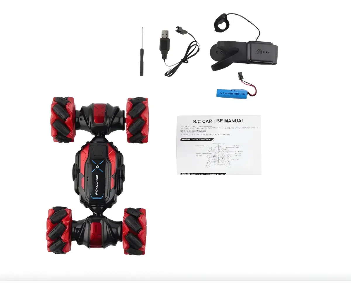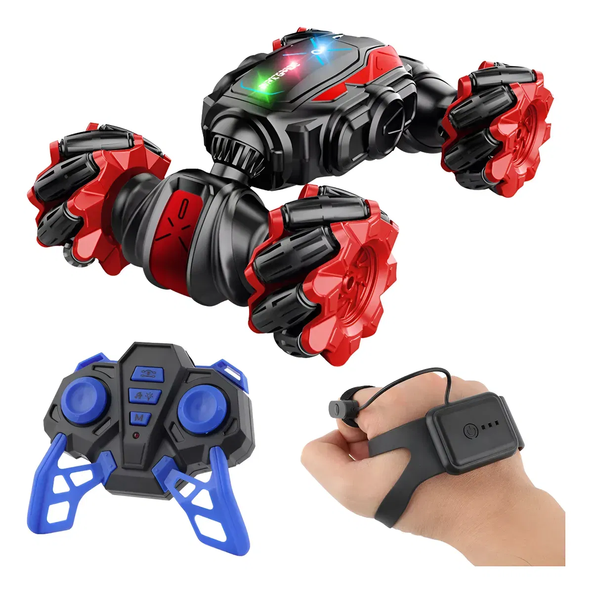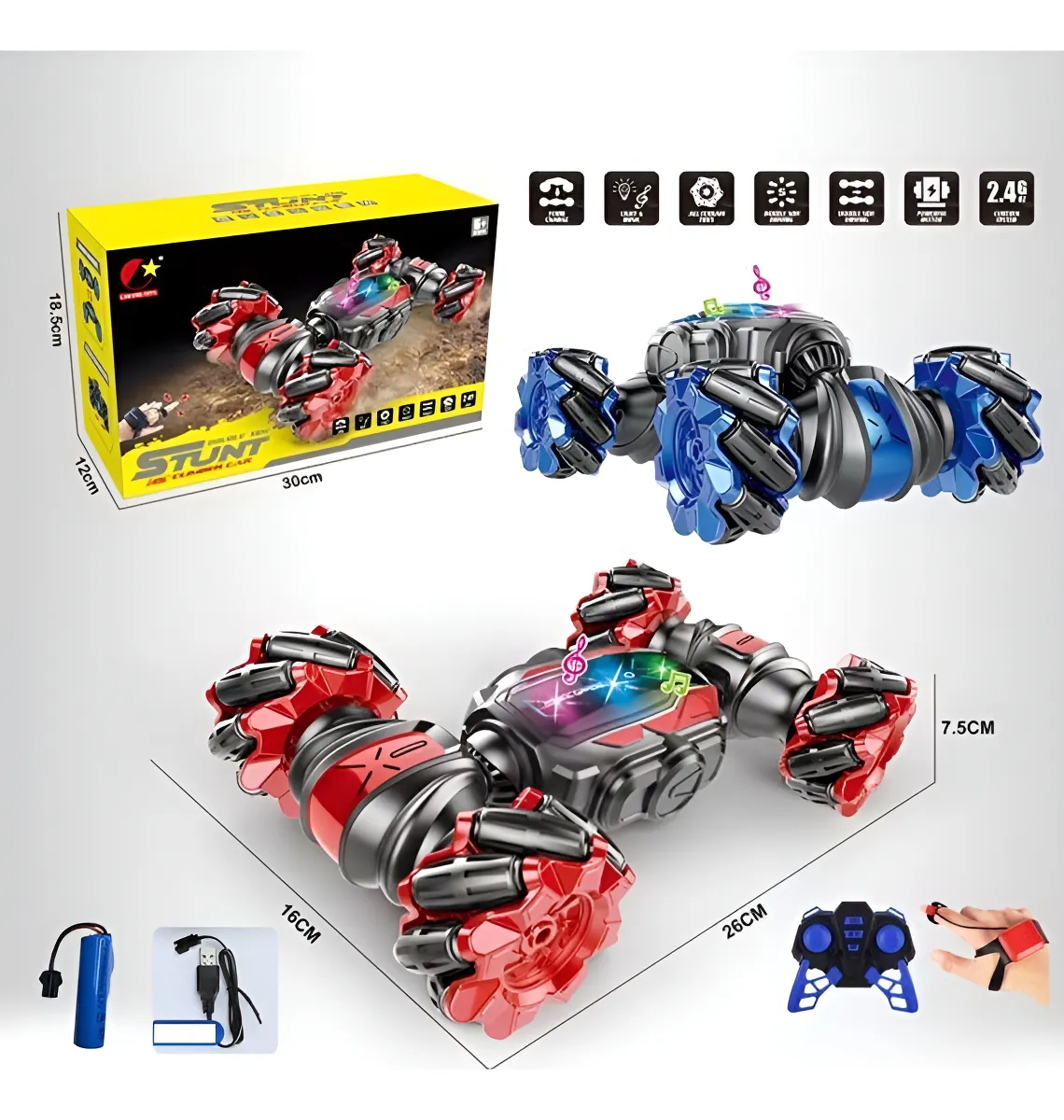Auto Con Control Remoto Inteligente Stunt Car Luz Y Sonido ¡Lleva la diversión a otro nivel con el Carro Acrobático para Niños! Diseñado para ofrecer una experiencia de juego única, este auto de control remoto deformable puede moverse en todas direcciones y realizar giros extremos de 360 grados. Con su tracción en las 4 ruedas, está listo para conquistar cualquier terreno y te permite disfrutar al aire libre sin preocuparte por perder el control. Control Remoto Inteligente: Cuenta con un control pulsera con sensor de gravedad. Esto proporciona un manejo más conveniente y emocionante. Transformación Deformable: Con solo presionar un botón en el controlador, el auto cambia de forma, adaptándose a diversas condiciones del terreno. ¡Ideal para aventuras en cualquier superficie! Perfecto para niños mayores de 6 años. Sorprende a tus pequeños con un vehículo elegante que les proporcionará horas de diversión. DATOS TECNICOS - Material Principal: Plástico y caucho. - Tiempo de Carga: Aproximadamente 60 minutos. - Tiempo de Juego: 25 minutos. - Distancia de Control Remoto: 30 metros. - Frecuencia de Control Remoto: 2.4 GHz. - Motor: Motor sin núcleo 615. - Potencia del Coche RC: Batería de 3.7V 500mAh. - Energía del Reloj Control: Batería de botón incorporada 2032. - Medidas: 32 cm x 18 cm x 8.5 cm aprox. - Peso del Coche: 218 g. - Edad Recomendada: 6 años en adelante.