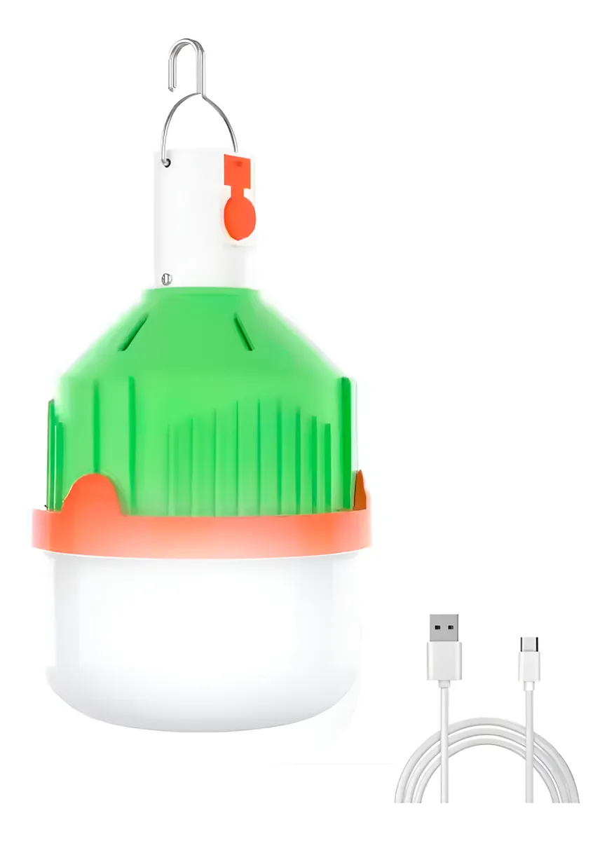 LUZ DE CAMPING LED USB: Carga inteligente multifuncional, segura y rápida, gancho de metal, listo para usar. LIGERO Y AHORRO DE ENERGÍA: bombilla LED portátil, 3 tonos de luz ajustables, brillo diferente para diferentes ocasiones, más ahorro de energía, mayor potencia duradera y ahorro, larga vida útil, cuentas de lámpara LED de alta calidad, larga vida útil. Una herramienta imprescindible para su viaje a casa. BATERÍA RECARGABLE: batería interna de alta calidad y duración, ref 18650 con alta capacidad dando así una carga óptima de 4-8 horas continuas. SEGURO Y DURADERO: bombillas de emergencia colgantes hechas de material plástico de calidad, duraderas, protección ocular altamente translúcida, sombra de luz suave con 99% de velocidad de transmisión de luz, teniendo en cuenta el brillo y la función de protección ocular. APLICACIÓN Y USOS: Gancho de luz nocturna adecuado para casas, cocinas, balcones, puestos de mercado nocturnos, iluminación de emergencia, camping, senderismo, etc. ESPECIFICACIONES: Modelo: Bombillo led lámpara. Material: plástico Potencia: 50w Tono luz led: Blanco 6400k Vida útil: 10000H Modelo de LED: 5730 Tiempo de carga usb: 4 horas continuas. Tiempo de uso: 4-8 horas continuas. Voltaje carga: 5v USB Soporte de montaje: Gancho.