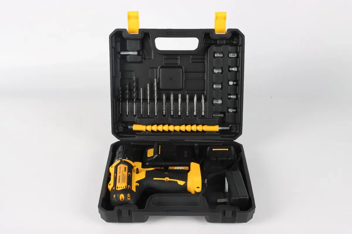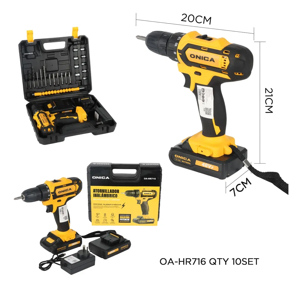CARACTERÍSTICAS * Velocidad Variable: 0-1350 rpm * Control de torque: 18 * Mandril autoajustable: 0,8-10mm * Indicador de carga * Luz de trabajo inegrada * Maletin rigido *Manual de instrucciones El kit Taladro OSR EL670 es la herramienta ideal para el hogar. Facil de usar te ayudara a solucionar muchos problemas en tu casa, oficina,etc. La ventaja de contar con 2 baterias te asegura la continuidad de tu trabajo sin necesidad de largas esperas. Los accesorios y el maletin con 24 piezas te dan la ventaja de poder transportarlo a cualquier lugar que necesites.