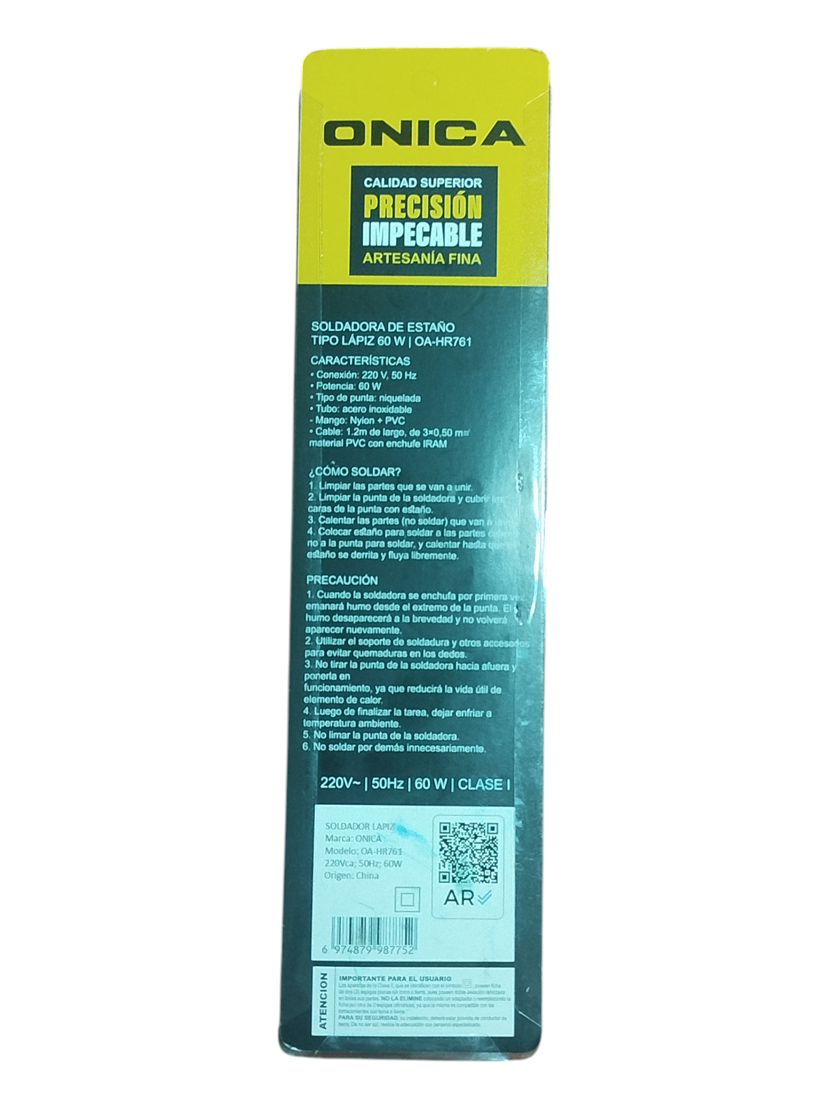 Producto: Cautin soldador Profesional tipo lapiz Potecia; 60 W Voltaje : 110V Temperatura 460 grados Incluye: 3 puntas y la base