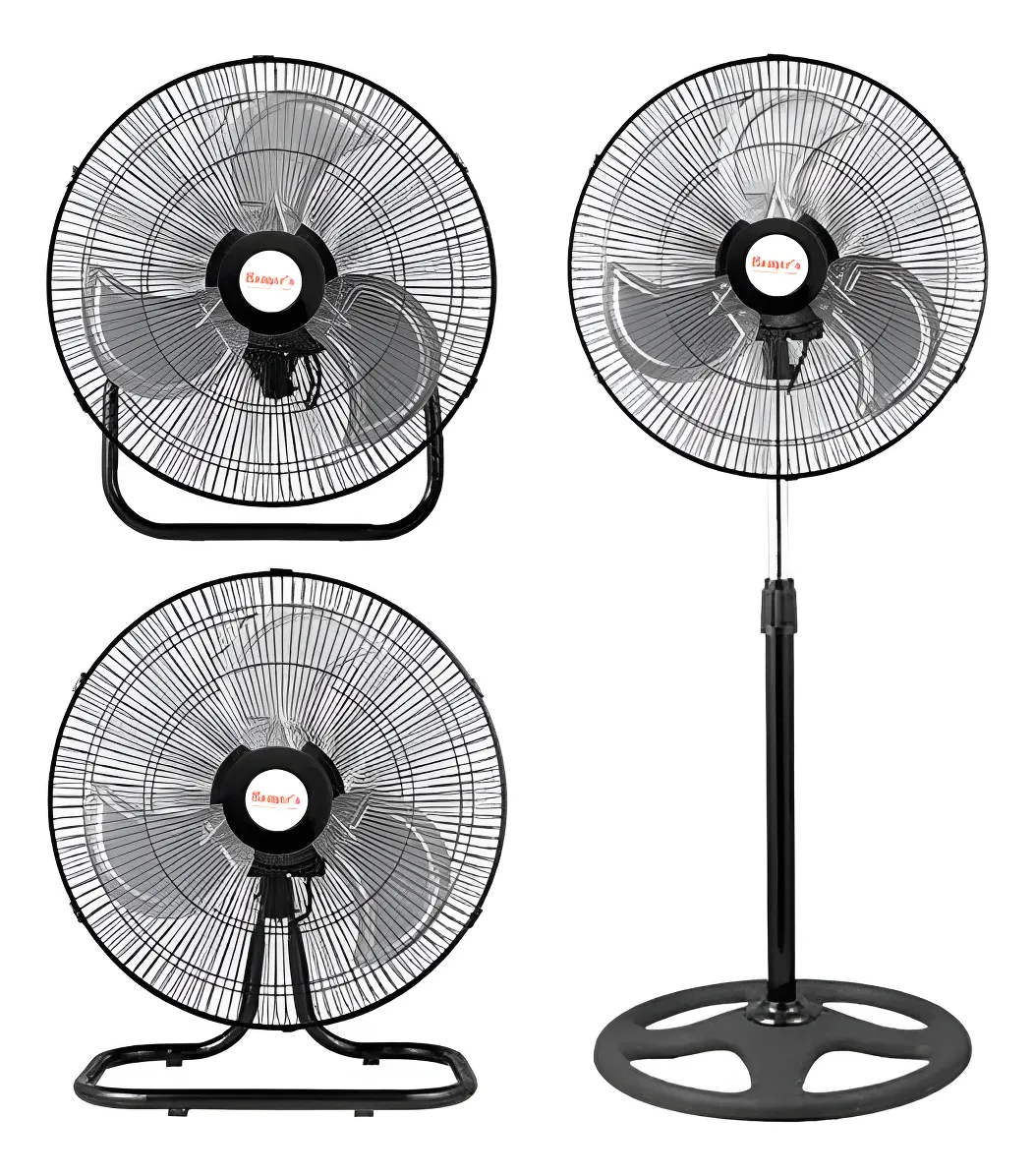 3 EN 1 – VENTILADOR DE PIE, PARA COLGAR Y PARA APOYAR EN MESA – PALETA DE METALOSCILACIÓN HORIZONTAL MECÁNICAPOTENCIA 100 WATTS