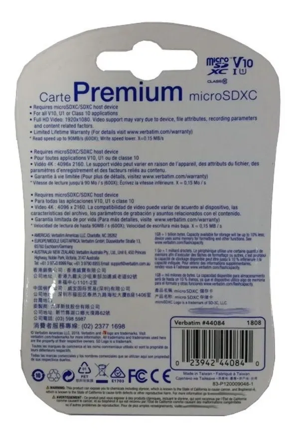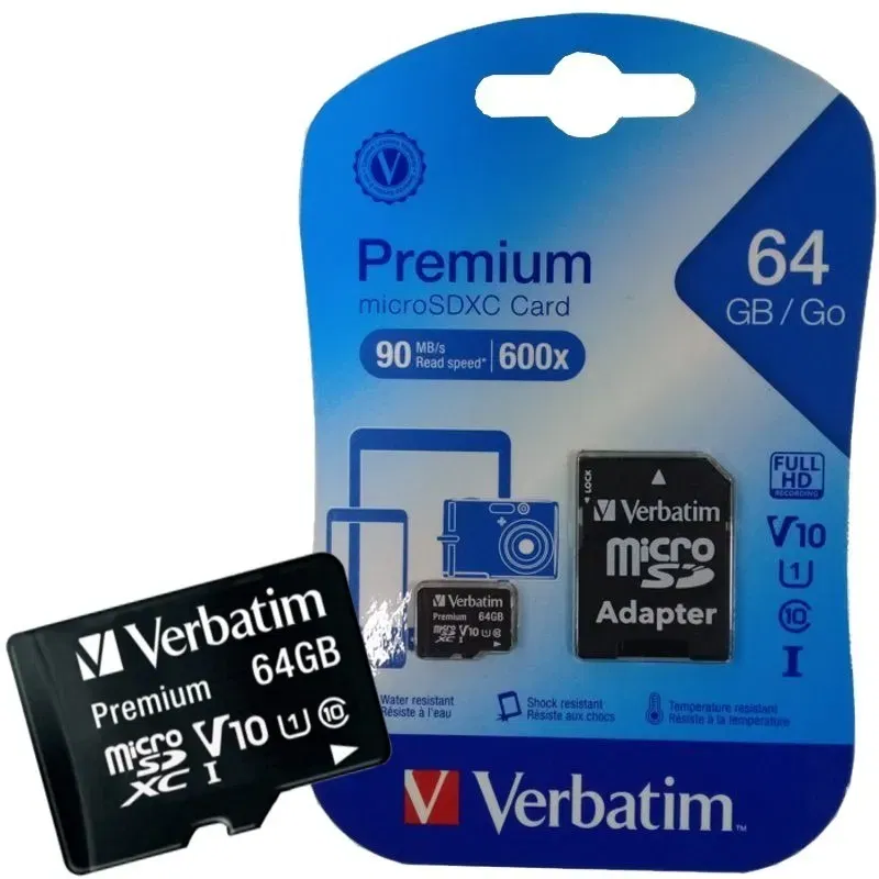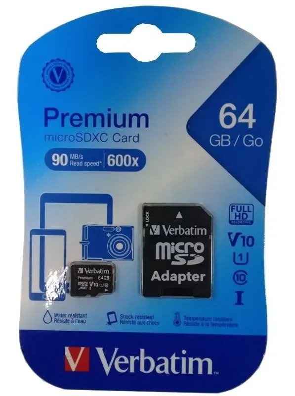 Memoria Micro Sd 64gb Verbatim Con Adaptador Diseñada para durar, proteger datos y ampliar el almacenamiento de distintos dispositivos, la memoria Verbatim 44084 Premium permitirá guardar archivos de forma simple, segura y efectiva. Optimizá tu espacio y ganá tiempo Esta tarjeta microSDXC posee un almacenamiento confiable y de gran rendimiento. Ideal para filmar videos de alta resolución y fotografías con alto nivel de detalle. Máximo rendimiento Ahorrá tiempo gracias a su velocidad clase 10, que posibilita la transferencia de datos de forma rápida y efectiva. Versátil y funcional ¡Usala donde quieras! Su adaptador SD facilita la colocación de la tarjeta en distintos aparatos electrónicos, lo que te permitirá intercambiarla y ganar espacio en el equipo que necesites. Guardá tus videos con la máxima resolución Gracias a su tecnología avanzada vas a poder registrar videos en Full HD. Disfrutá de cada momento de filmación, sin preocuparte por su calidad de almacenaje.