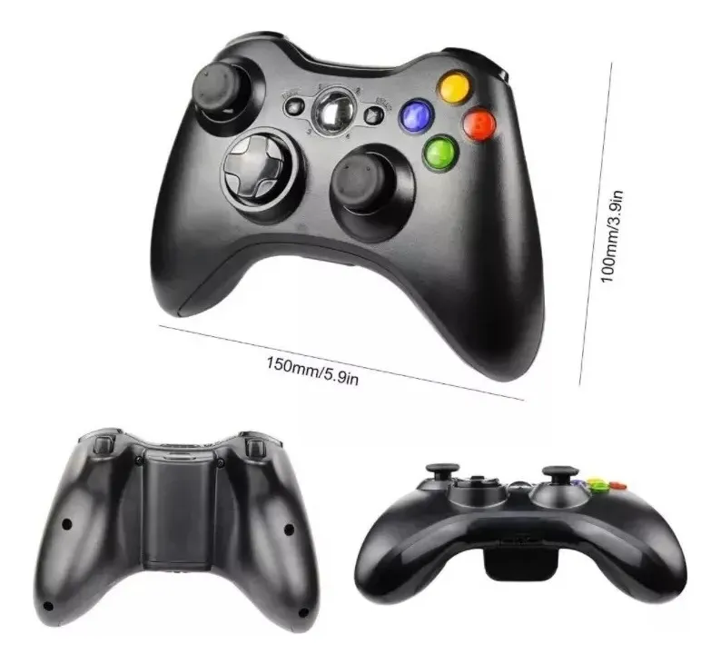 Joystick inalámbrico Bluetooth con receptor USB a pilas (usa dos pilas AA no incluidas) especialmente diseñado para ser compatible con consolas Xbox 360, Slim 360, PS3 y PC, Computadora, Celulares Tablet Android. * Incluye receptor USB para conectar a cualquiera de las consolas de juegos mencionadas y a computadoras compatibles con Windows. Se debe conectar siempre el receptor USB para que funcione en PS3, X Box 360, Computadora. * Diseñado para Xbox 360 y PC. El Joystick esta especialmente diseñado para ser compatible con sistemas de juegos Xbox 360 y Slim, Consolas PS3 y PC Computadora Windows 7/8/10/11 y Android. (Nota: NO APLICA Xbox One NO PS4 / PS5). Un gran reemplazo para el Joystick original. • Diseño ergonómico • 8 Botones programables • 4 botones direccionales • 2 palancas analógicas • Dos motores de vibración • 3 niveles de Rumble Control - Full / Medium / Low o Off CONTROL super preciso: los joysticks izquierdo y derecho mejorados y las almohadillas direccionales de 8 vías garantizan que los jugadores tengan un control preciso. Si Necesitas un controlador inalámbrico Xbox 360 preciso, es tu opción. Diseño inalámbrico: nuestro Xbox360 Gamepad puede controlar el movimiento desde una distancia de 30 pies sin demora. Estable La conexión te permite disfrutar de la diversión traída por el juego. Gran rendimiento: admite 4 reproductores para usar el mando a distancia Xbox360 para conectarse a la consola Xbox360 al mismo tiempo; Usando el Puerto de auriculares integrado de Xbox LIVE Play; El botón "Xbox360 Wizard" se puede usar para rastrear a tus amigos y controlar remotamente. • Diseño ergonómico • 8 Botones programables • 4 botones direccionales • 2 palancas analógicas • Dos motores de vibración • 3 niveles de Rumble Control - Full / Medium / Low o Off • No es fabricado por Microsoft