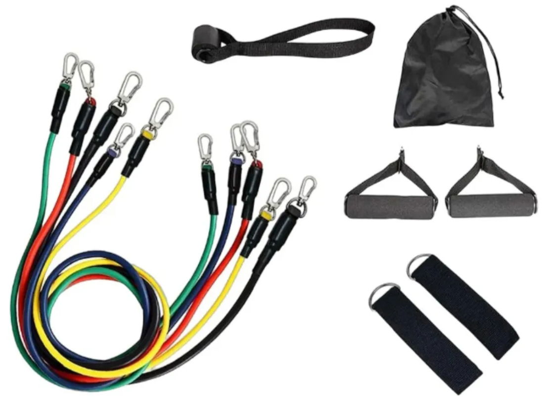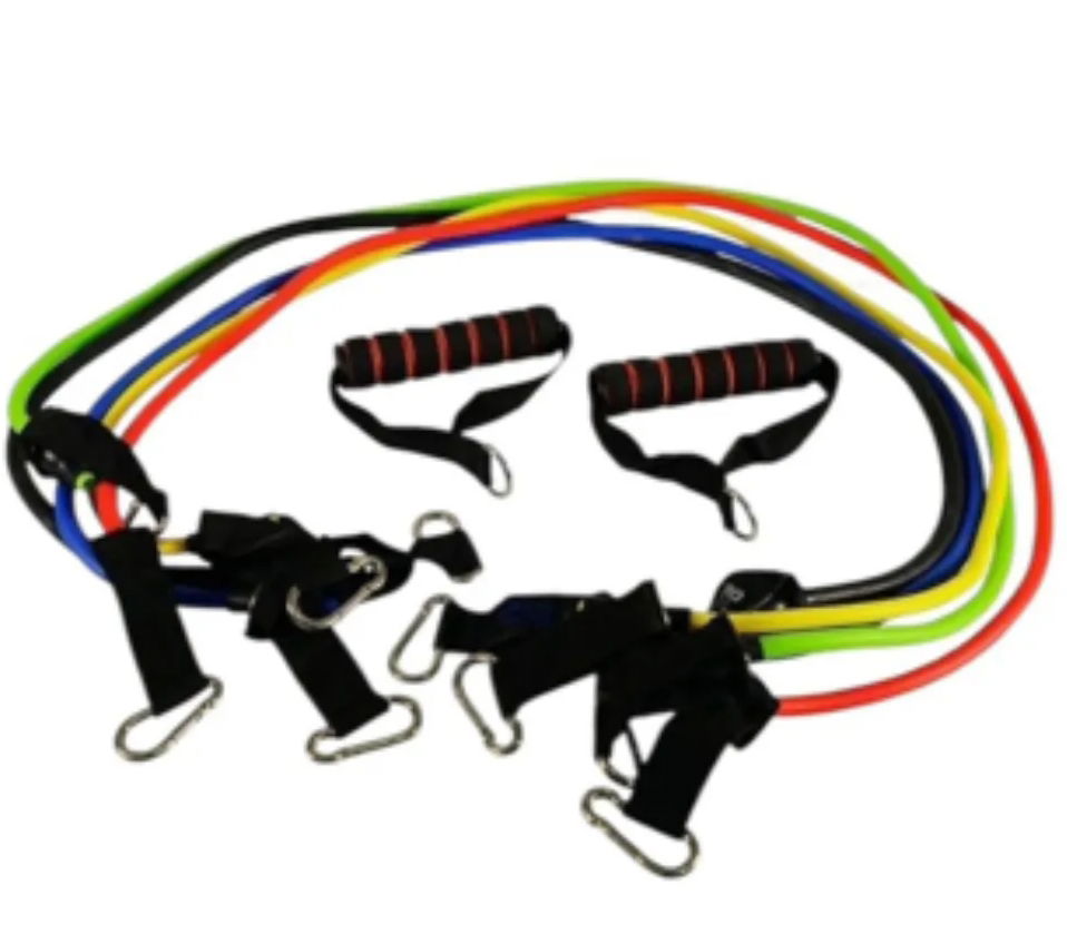 Bandas elásticas de fitness, bandas de resistencia de 11 piezas con 5 tubos de ejercicio, correas, correas para los tobillos, ancla y bolsa, para culturismo, yoga, hombres y mujeres Resistencia de 5 bandas elásticas de colores Resistencia: el juego de bandas elásticas incluye 5 gomas de diferentes resistencias con diferentes colores, que van desde 10 a 30 libras. Puedes realizar diferentes ejercicios en función de tu nivel y fuerza. amarillo 10 libras, rojo 15 libras, azul 20 libras, verde 25 libras, negro 30 libras. Todas las correas miden 1,32 m, puedes usarlas solas o juntas en cualquier combinación hasta un máximo equivalente a 100 libras. Materiales de alta calidad: las correas están hechas de látex 100% natural y respetuoso con el medio ambiente. Tienen una gran resistencia al desgaste y una elasticidad perfecta, hebilla de acero metálico para mayor resistencia, correa antideslizante, cómoda y absorbente. El color de los tubos de látex natural se oxida después de un largo período de uso, no te preocupes, es una situación normal. Bandas de resistencia mejoradas : el juego de bandas de resistencia incluye 5 bandas de resistencia, 2 correas de espuma blanda, 2 correas para los tobillos, un anclaje para la puerta y una bolsa de transporte. Satisfacerá tu necesidad de entrenamiento personal. Pecho, espalda, caderas, abdomen, hombros, extremidades, etc. Las hebillas reforzadas con conexión de diseño inverso son más fáciles de desmontar. Se utilizan para el entrenamiento y la fisioterapia: las bandas elásticas de fitness se utilizan a menudo para hacer deporte y estar en forma. Ejercicios de estiramiento, Fitness, Insanity, P90X u otros programas de entrenamiento. Pero también se usa ampliamente para fisioterapia, recuperación o para aumentar la movilidad. Las bandas de ejercicio están diseñadas para un mayor entrenamiento de fuerza. NOTA: NO corte ni frote las bandas elásticas con objetos afilados. No está muy limitado por lugares, es muy fácil de resolver. Con bolsa de transporte, diseño portátil para viajar. Empuñadura de espuma suave y correas más resistentes para el anclaje de la puerta y los tobillos. Cinco bandas de resistencia apilables HASTA 100 LIBRAS: Estas bandas de resistencia se pueden usar solas o apiladas en cualquier combinación hasta un máximo equivalente a 100 libras. Amarillas de 10 libras: su ligero nivel de resistencia es realmente adecuado para la rehabilitación. Green 15 libras: el nivel de resistencia de ligero a medio es perfecto para el calentamiento. Red 20 libras: nivel de condición física promedio para ejercitar el brazo o el hombro. Azul de 25 libras: una resistencia media a fuerte puede adaptarse bien al entrenamiento de alta elasticidad. Negro, 30 libras: Un alto nivel de resistencia puede satisfacer tus necesidades diarias de estiramiento, brazos o piernas. Lista de paquetes: 5 correas de resistencia para tubos, 1 anclaje para puerta 2 tobilleras 2 correas blandas 1 bolsa de almacenamiento.