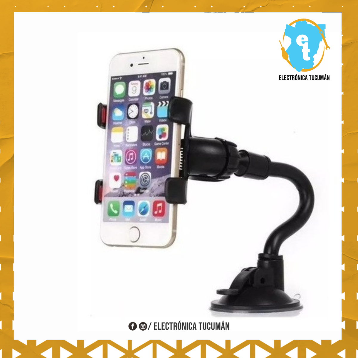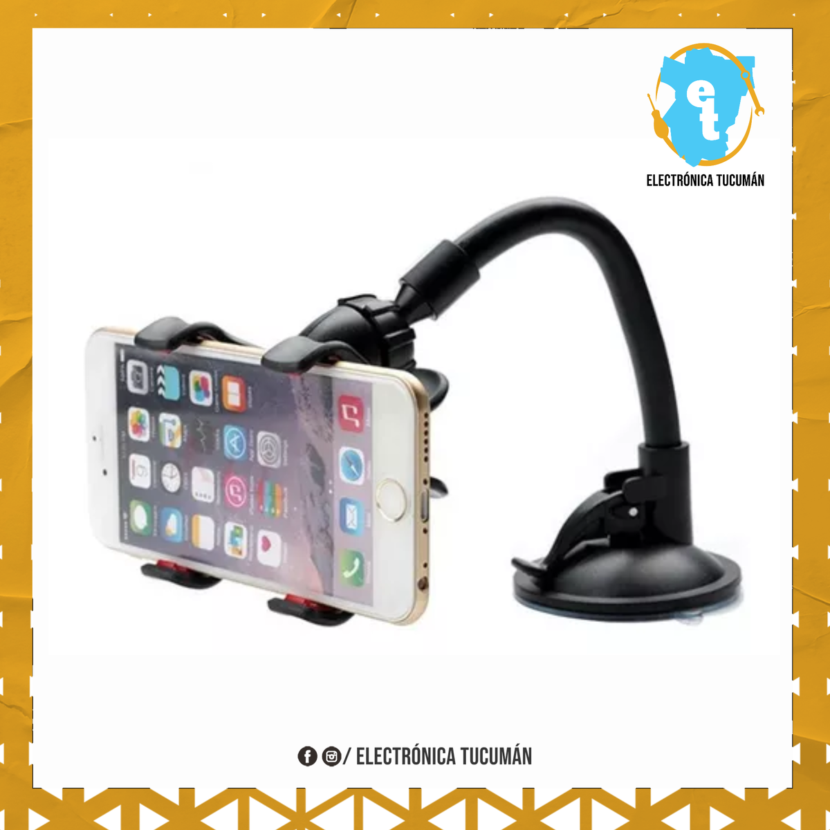 – Agarre de doble pinza con terminaciones en goma totalmente seguro – Brazo largo flexible para ajustar una vista totalmente personalizada – Fuerte succión a ventosa lavable con agua – Rotación del celular de 360º – Ideal para autos parabrisas o el parabrisas – Compatible con GPS o los Smartphones actuales más grandes – Apertura máxima de 6? aprox. (130mm)