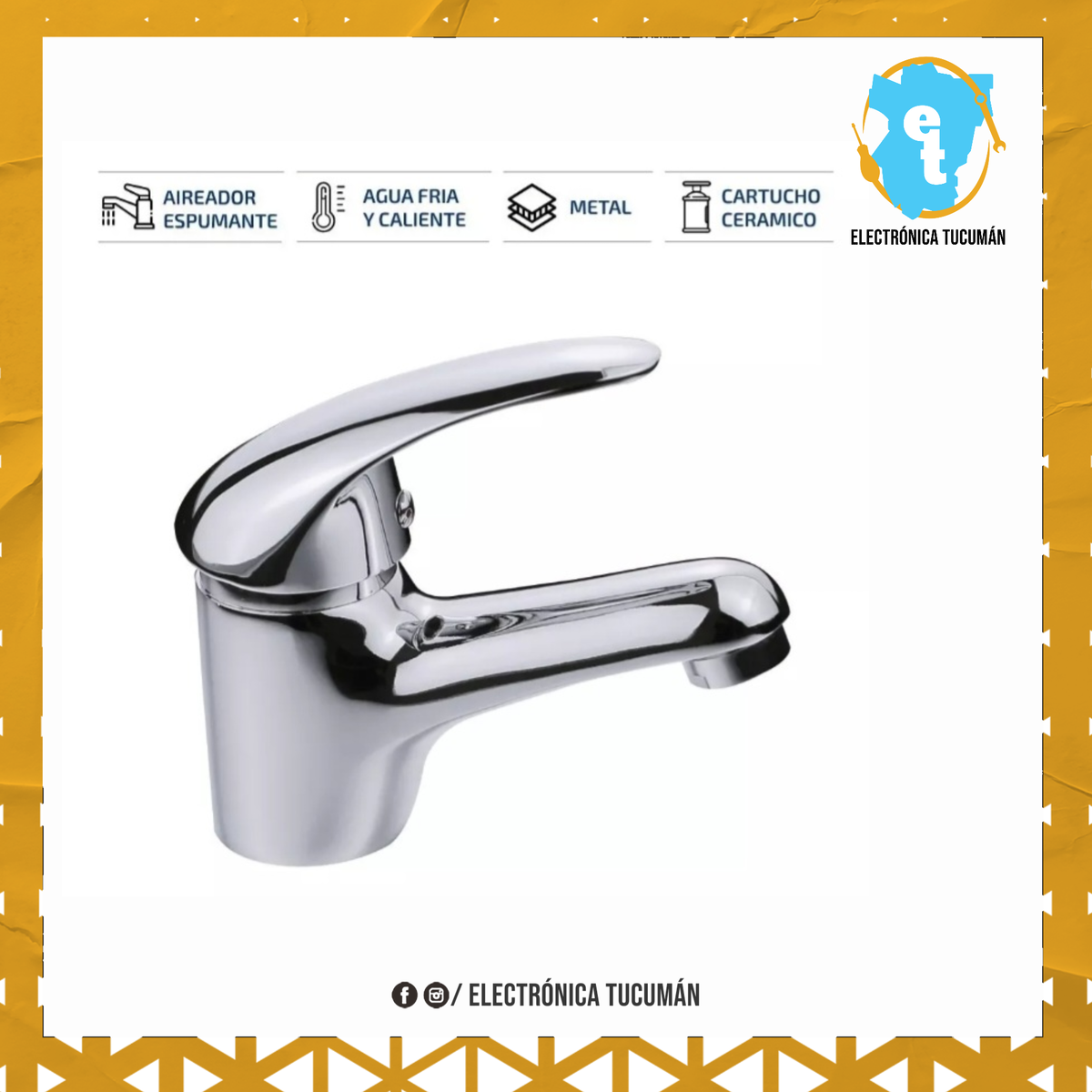 Dimensiones: Alto Total 95mm. Ancho Total 130mm. Alto hasta el pico 50mm. Ancho Manija 110 mm. - Peso neto: 345gr. - Material: RPC y Acero inoxidable. - Acabado: Cromado. - Kit de fijacion/instalacion. - Repuestos universales. - Incluye flexibles de acero inoxidable con conexion estandar de 1/2 pulgada (2u) de 35cm de largo para agua fria y caliente. - Griferia con cierre suave, alta durabilidad y facil limpieza. - Un unico comando de facil de accionar y regular. - Aireador incluido en el pico para que el agua sea suave y espumosa. - Reduce la presion y evita salpicaduras. - Contribuye al ahorro de hasta un 30% de agua.