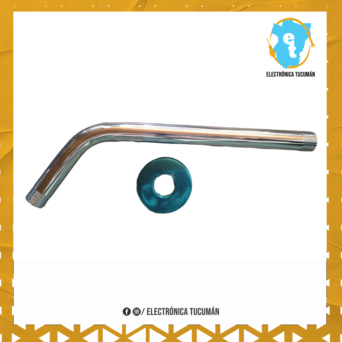 BRAZO DE DUCHA PARA BAÑO 43 CM. Caño de Acero en "L" a 90º de Acero Inoxidable. Brazo para Flor de ducha, Diseño redondo y terminacion Cromada. con Rosca universal de 1/2 pulgada. DATOS TECNICOS: - Medida Largo: 40 cm. - Material: Acero Inoxidable. - Roscas 1/2 "