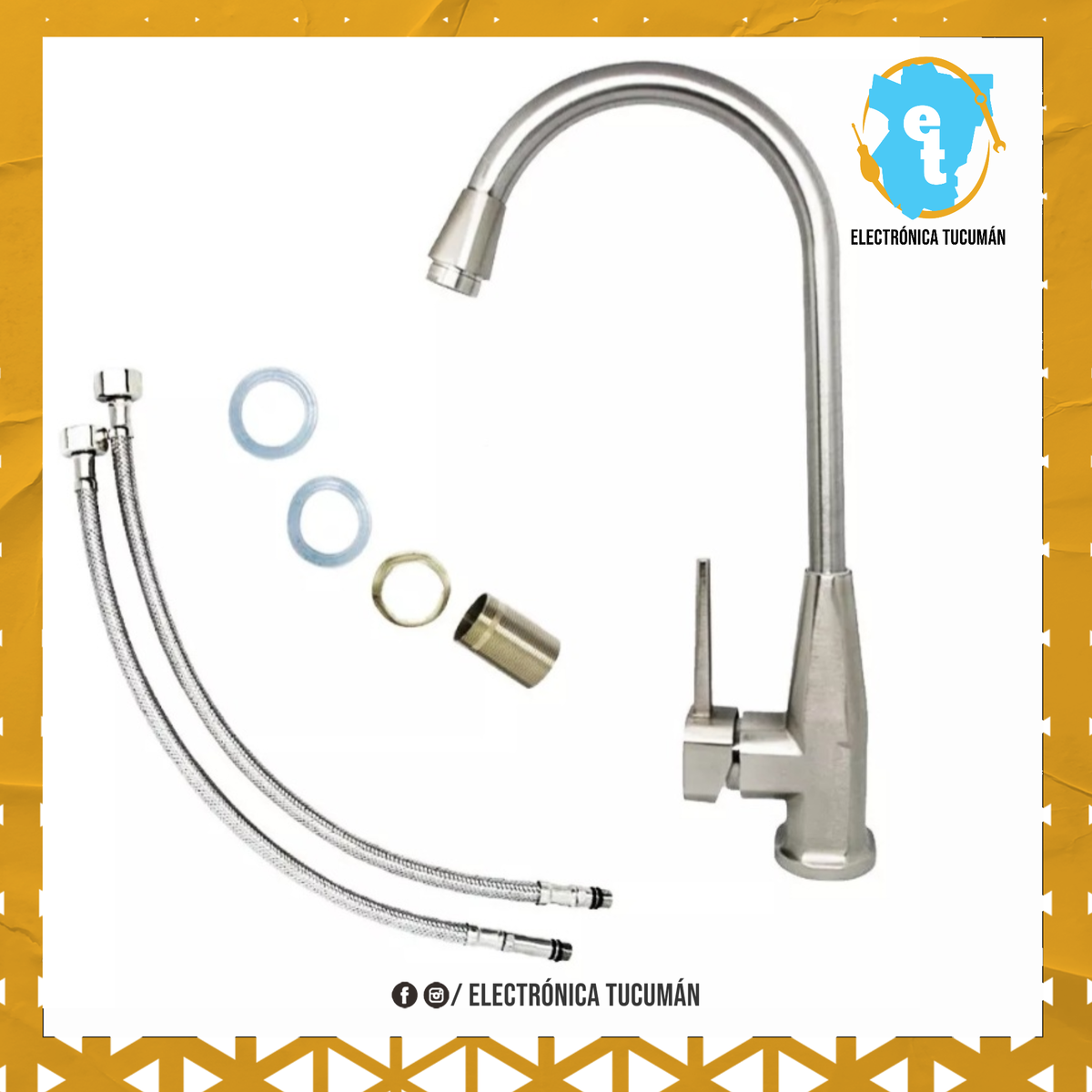 Marca: Rory - Color: OPACO - Material: Metálico - Material cuadro: Bronce y metal - Medida del cartucho: 40 " - Cierre cerámico doble step economizador de agua - Ahorro de hasta un 45% de agua - Rociador extensible hasta 100 cm - Pico móvil 360° con filtro aireador - Incluye flexibles para su conexión - Cierre: Cerámic Griferia Cocina Mesada Monocomando Acero Inoxidable Pico Curvo MARCA: RORY