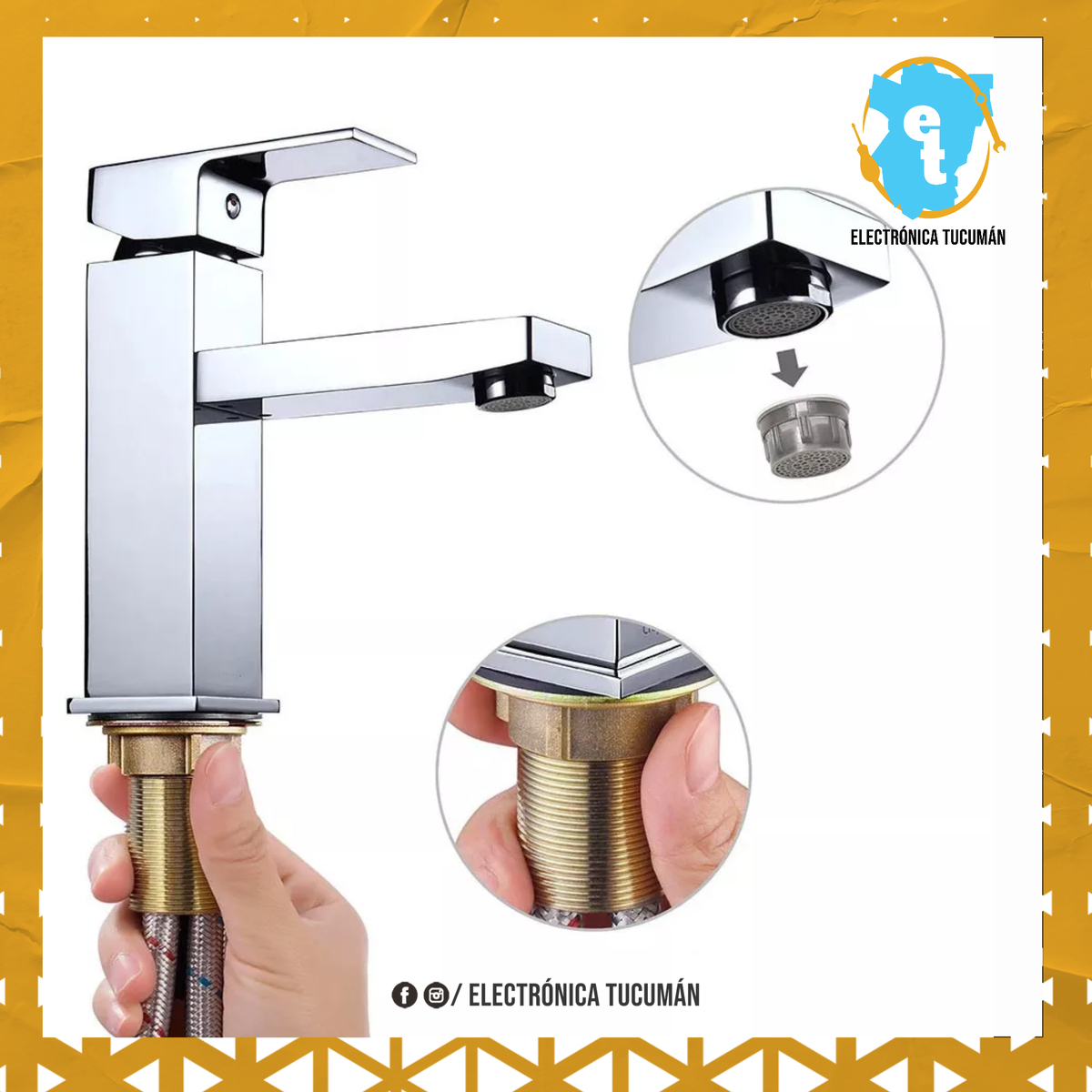 Monocomando Lavatorio Cuadrada Incluye kit de fijación y flexibles de acero inoxidable. Caño grueso - agua fría y caliente (mezcladora) Aireador espumante. Presentación en caja individual Repuestos universales Cierre cerámico con cartucho 35 mm Altura: Imágenes 100% reales del producto La instalación debe ser realizada por un profesional (no se debe utilizar adhesivo ni apretar de mas las tuercas y orings) Se debe contar con buena presión de agua en la cañería. Consultar con su plomero.