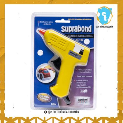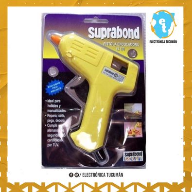 Suprabond es la marca líder en pistolas encoladoras en Argentina. Ofrecemos pistolas encoladoras que se adaptan tanto a las necesidades de un proyecto artesanal cuidado hasta las exigencias de un proceso industrial intenso. La calidad de nuestras pistolas se observa en su capacidad de adhesivado, su confiabilidad durante periodos extensos de trabajo intenso y su larga vida útil. /Descripción/ Pistola Hot-Melt ideal para hobbies y manualidades. Puede ser utilizada para reparar, sellar, pegar y decorar. Contiene exclusivo pico aislado e incluye 2 Barras? Adhesivas. Certificada bajo normas IEC 60335-1 y 60335-2. Certificado IRAM Nº S-0065/003-1. /Ideal para/ • Hobbies • Manualidades • Decoración