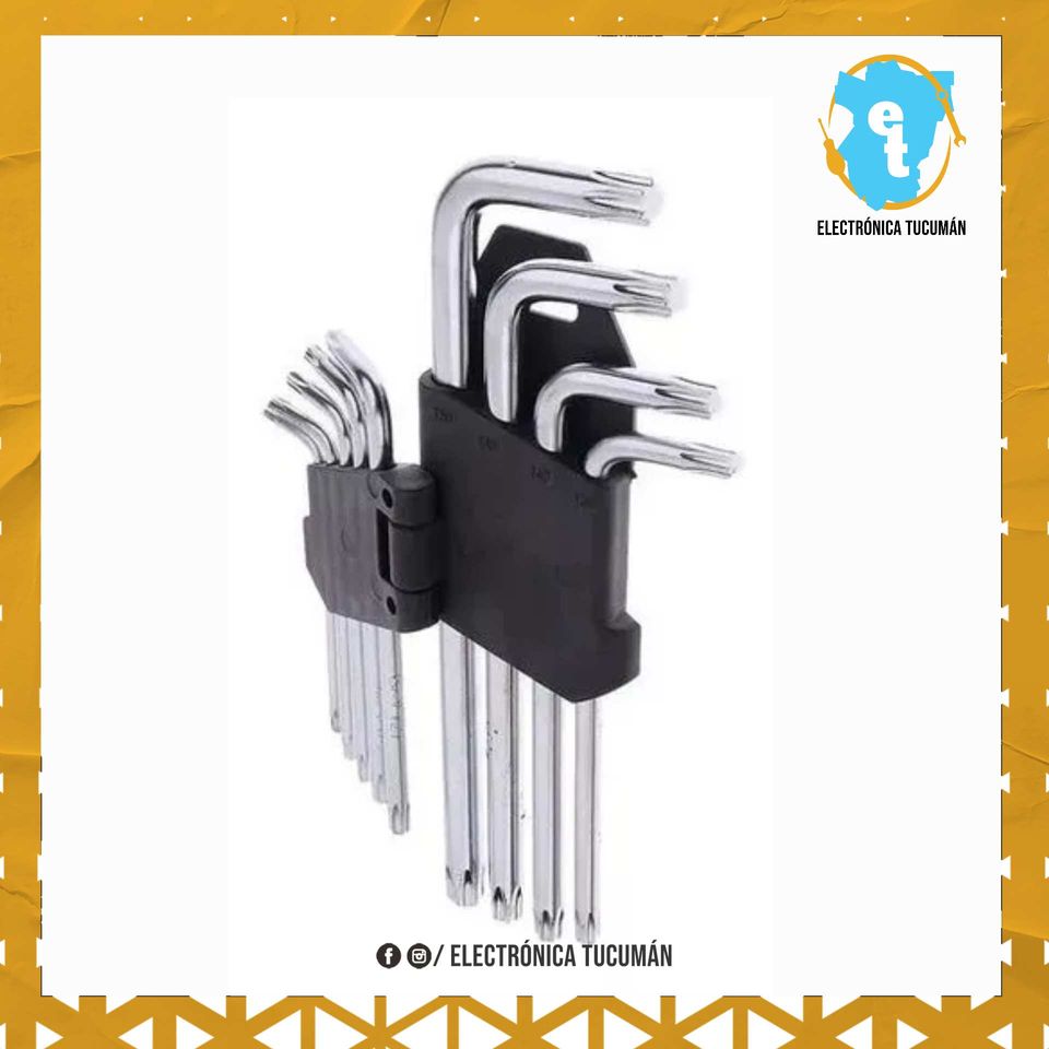 Juego De Llaves Torx 9 Piezas T50 a T10 Juego de 9 llaves allen puntas torx con estuche organizador, las llaves hexagonales Torx se utilizan generalmente en automóviles, motocicletas, sistemas de freno de bicicleta, discos duros, garaje, muebles, hogar, sistemas de ordenador y electrónica de consumo y más consta de 9 llaves fabricadas en acero cromado de alta durabilidad. – 9 Llaves puntas Torx T50 10 T45 8 T40 6 T30 5 T27 4 T25 3 T20 2.5 T15 2 T10 1.5 – Juego de llave Media – Cuerpo de Acero Cromo Vanadio – Estuche organizador resistente de ABS