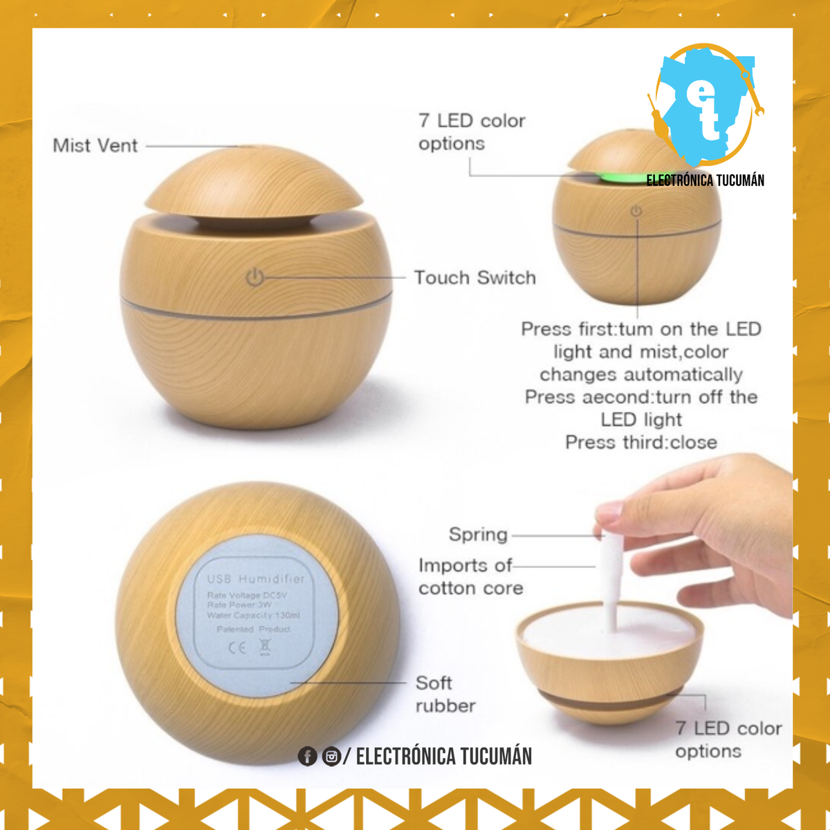 Difusor Aromatico Humidificador Usb Dc Vaporizador Electrico