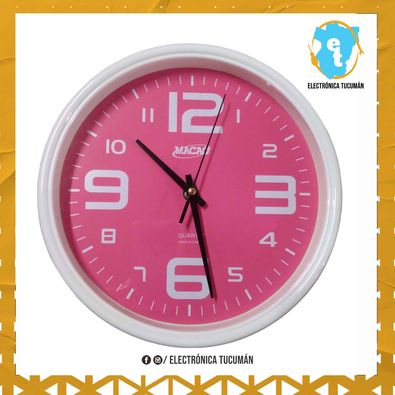 FORMA DE RELOJ: REDONDO COLOR: BANCO CON ROSA MEDIDA RELOJ: 20 CM MEDIDA MAECO: 2 CM MATERIAL: PLASTICO PILA AA (NO INCLUIDA)