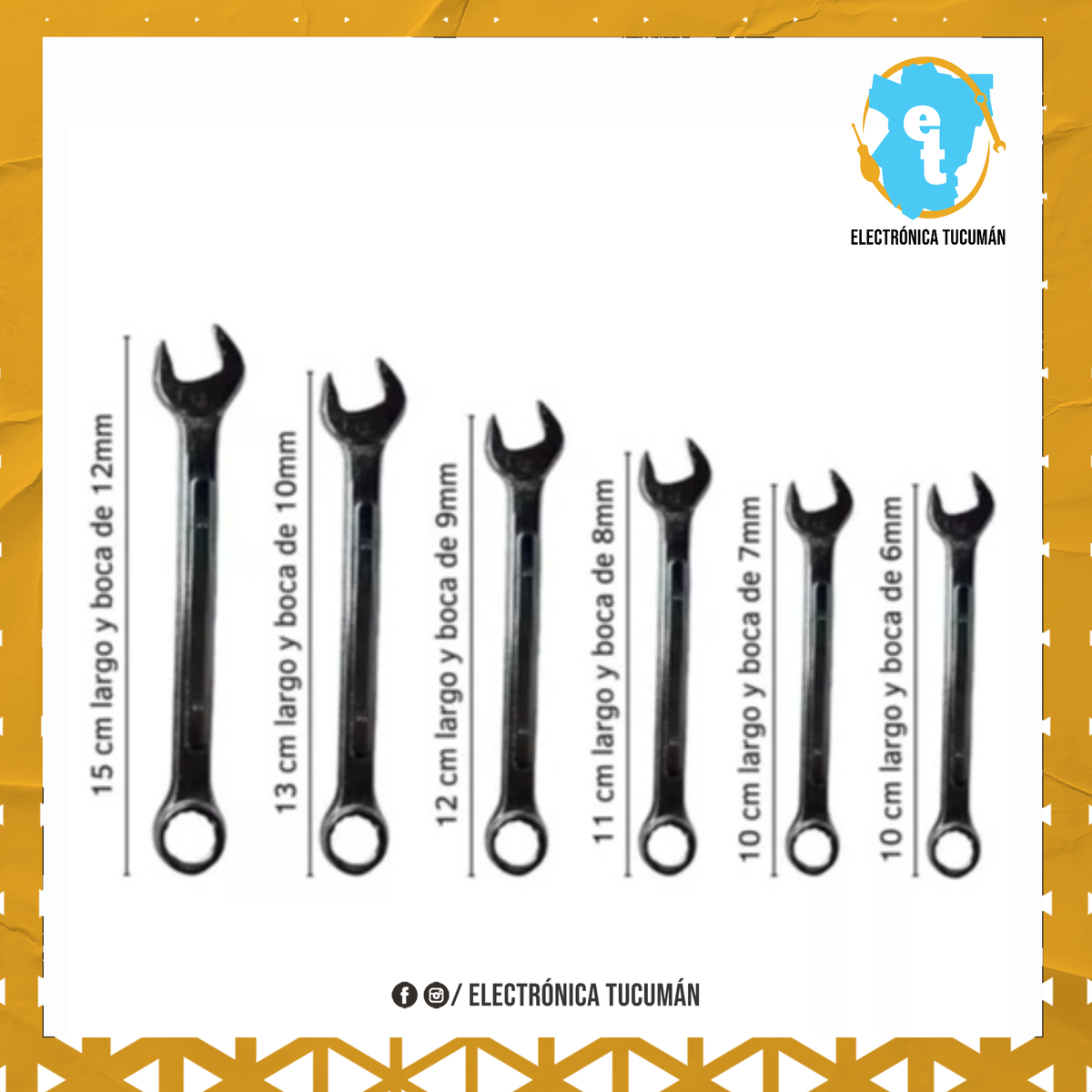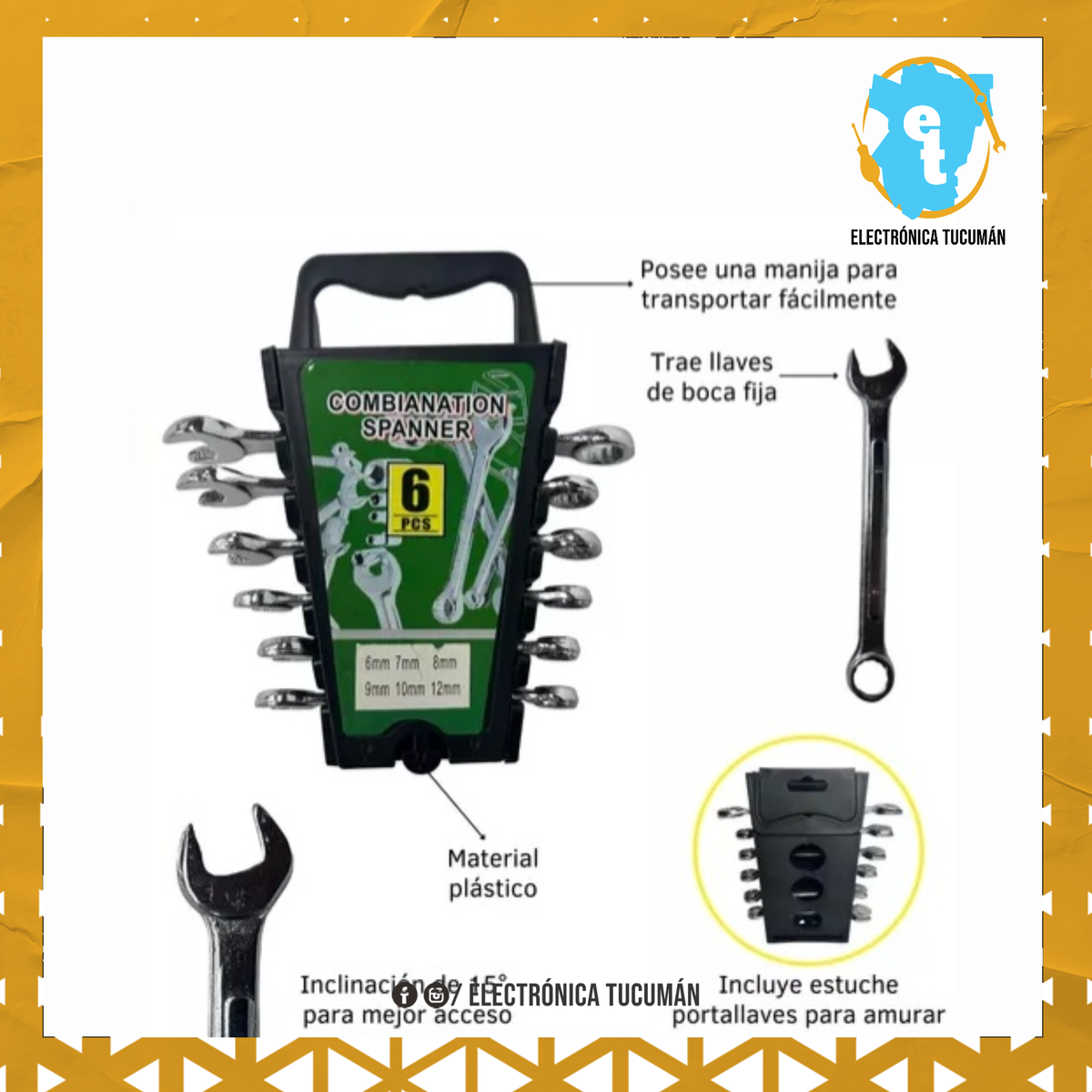 Presentamos nuestro increíble Juego de Llaves combinadas de 6 Piezas, el compañero ideal para todas tus tareas de mantenimiento en el hogar. Este juego de llaves combina durabilidad, precisión y conveniencia en un conjunto compacto. Veamos sus características clave: El juego consta de 6 llaves de boca fija fabricadas en Acero Cromo Vanadio, un material de alta calidad conocido por su resistencia y durabilidad excepcionales. Estas llaves están diseñadas para soportar el uso intensivo y garantizan un rendimiento confiable a largo plazo. Cada llave tiene medidas específicas que cubren una amplia gama de aplicaciones. Desde la boca de 12 mm hasta la boca de 6 mm, estas llaves proporcionan la flexibilidad necesaria para enfrentar diversos trabajos en automóviles, motocicletas, sistemas de freno de bicicletas y mucho más. Su longitud, que varía entre 10 y 15 cm, proporciona un equilibrio perfecto entre maniobrabilidad y torque. Las llaves cuentan con una boca de punta abierta y boca estriada, lo que te permite sujetar con firmeza una amplia gama de tuercas y tornillos. Su inclinación de 15 grados facilita el acceso a áreas de difícil alcance, lo que te ahorrará tiempo y esfuerzo en tus proyectos de bricolaje. Este juego de llaves viene acompañado de un estuche portallaves, diseñado para brindar una organización práctica y un almacenamiento seguro. Gracias a su capacidad de amurarse en la pared, tendrás tus llaves siempre al alcance de la mano, evitando pérdidas y manteniendo tu espacio de trabajo ordenado. Si bien este juego de llaves es ideal para uso doméstico, es importante destacar que no está destinado a un uso profesional. Sin embargo, su calidad y rendimiento lo convierten en una opción perfecta para tareas de mantenimiento en el hogar, el garaje, muebles y más. En resumen, el Juego de Llaves combinadas de 6 Piezas con estuche amurable ofrece durabilidad, precisión y conveniencia en un conjunto compacto. ¡Prepárate para enfrentar cualquier desafío de bricolaje con confianza y facilidad!