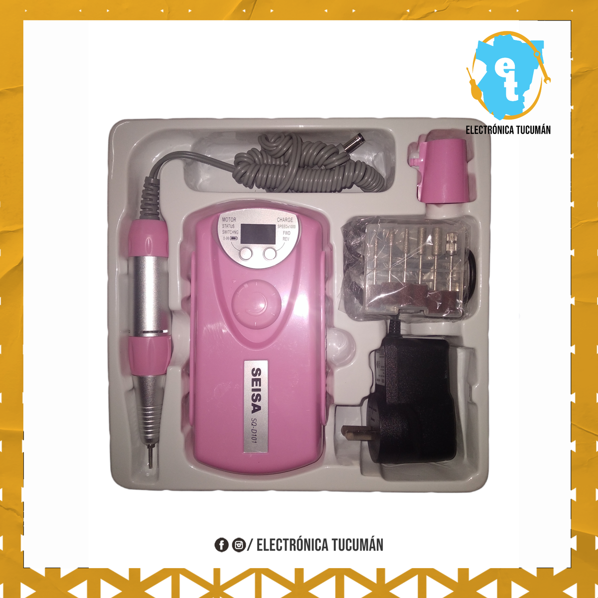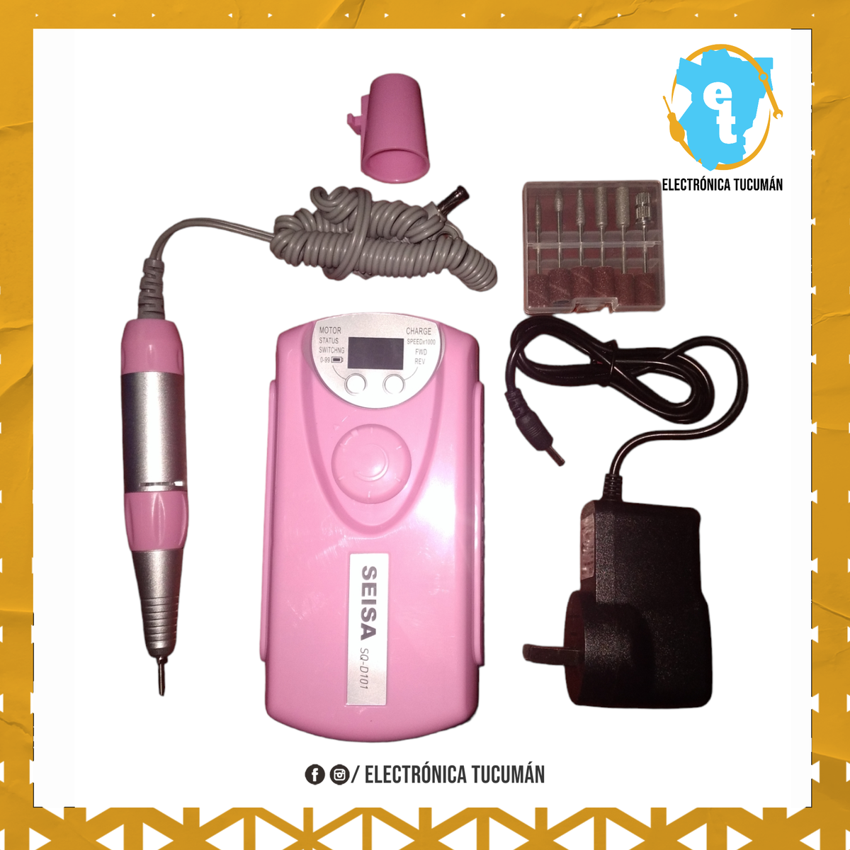 *TORNO PROFESIONAL RECARGABLE MANICURIA 35.000 RPM ideal para trabajos fuera de casa donde el espacio en tu bolso y el peso cuentan. * Marca: SEISA * Modelo: SQ-D101 * Pantalla LCD Visor de Velocidad. * Mandril de facil destrabe y excelente calidad. * Clip para Enganchar a la Cintura. * Traba para Apoyar en la Mesa. * Velocidad de Rotación: MAX 35.000rpm. nominal 30.0000 rpm * Regulador de Velocidad. * Funcion Reversa. * Indicador nivel de carga de bateria. * Excelente potencia. * Kit de 6 Fresas. * Sirve para Manicuría y Pedicuría. * Bajo Nivel de Ruido al Trabajar. * Cargador 220v directo. * Batería Recargable de Litio 2.000mAh. * Tamaño: 13.5cm x 7.2cm.