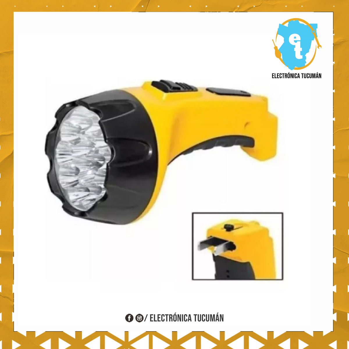 – Linterna de mano de 15 Leds. – Luz potente, super Brillante. – Liviana y Compacta. – Batería Recargable plug directo a 220v – Ideal para seguridad, el auto o simplemente ir de campamento o pesca. – Diseño Ergonómico, Super Cómoda. – Interruptor ON/OFF.