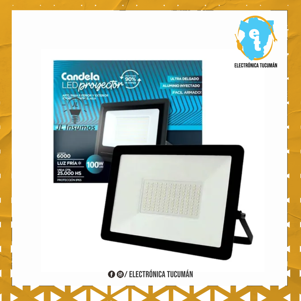 Potencia 100w Color de carcaza negro Apto intemperie ip65 Angulo apertura 120 grados Lumenes 6000 Vida Util 25000 hs