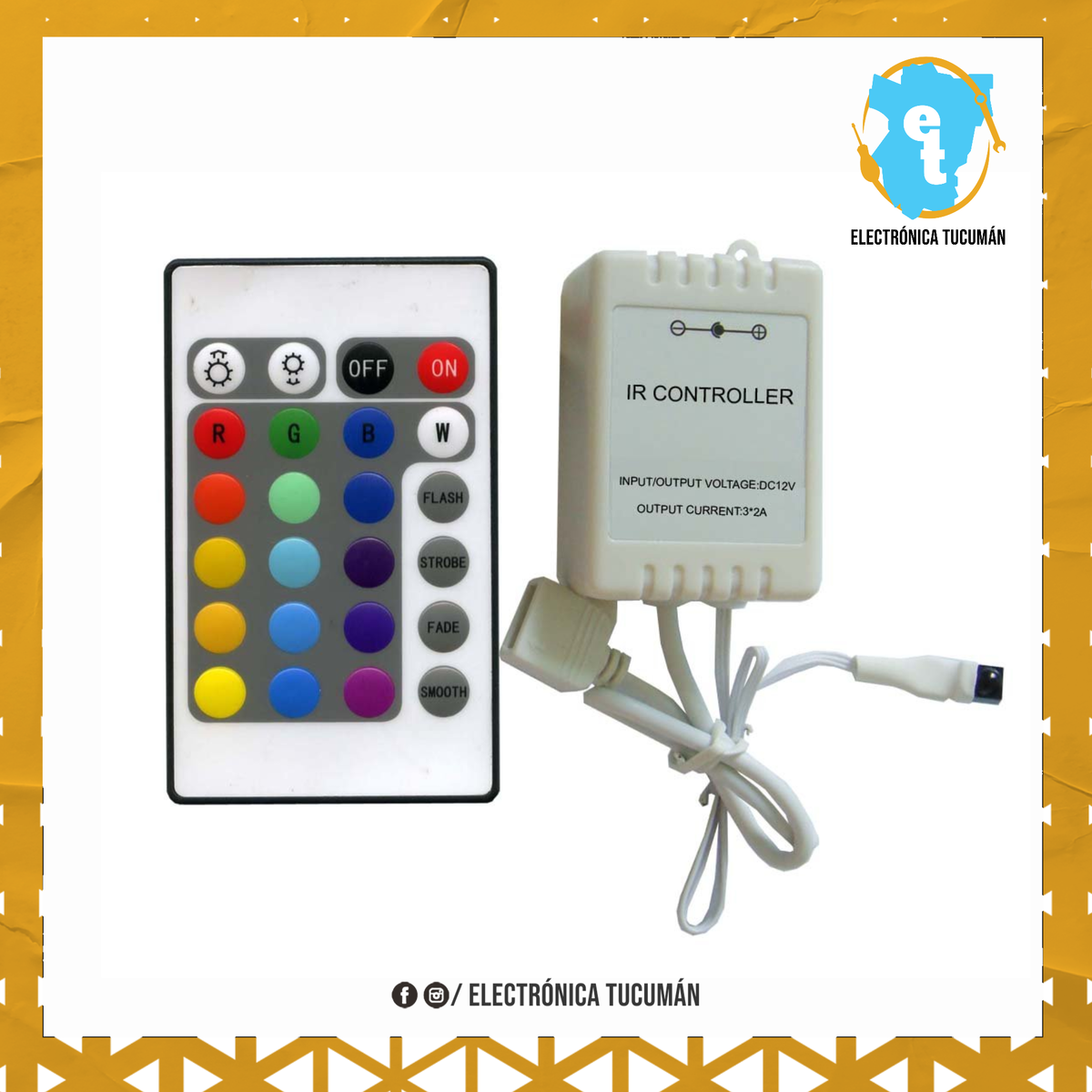 CONTROLADOR RGB 12V PARA TIRA LUCES LEDS CONTROL REMOTO 24 TECLAS 3528 5050