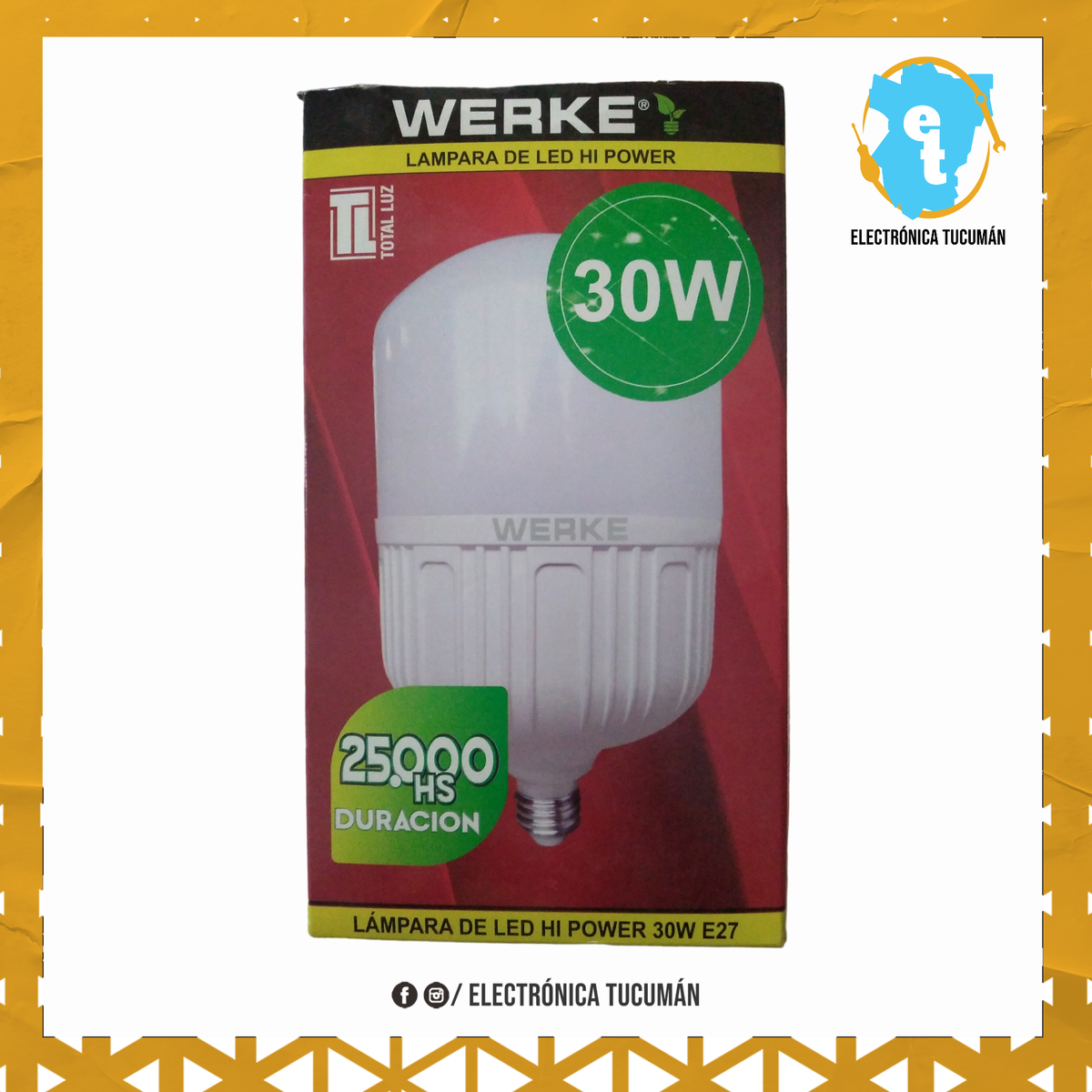 Lámpara de alta potencia de 30 W color de luz Frio Vida útil Estimada: 25.000 horas La iluminación equivale a una lámpara antigua halógena de 170 W Rosca E27 – Para conectar directo a Red de 220 v. Ideal para lámparas galponeras o faroles exteriores donde se necesita iluminación fuerte.