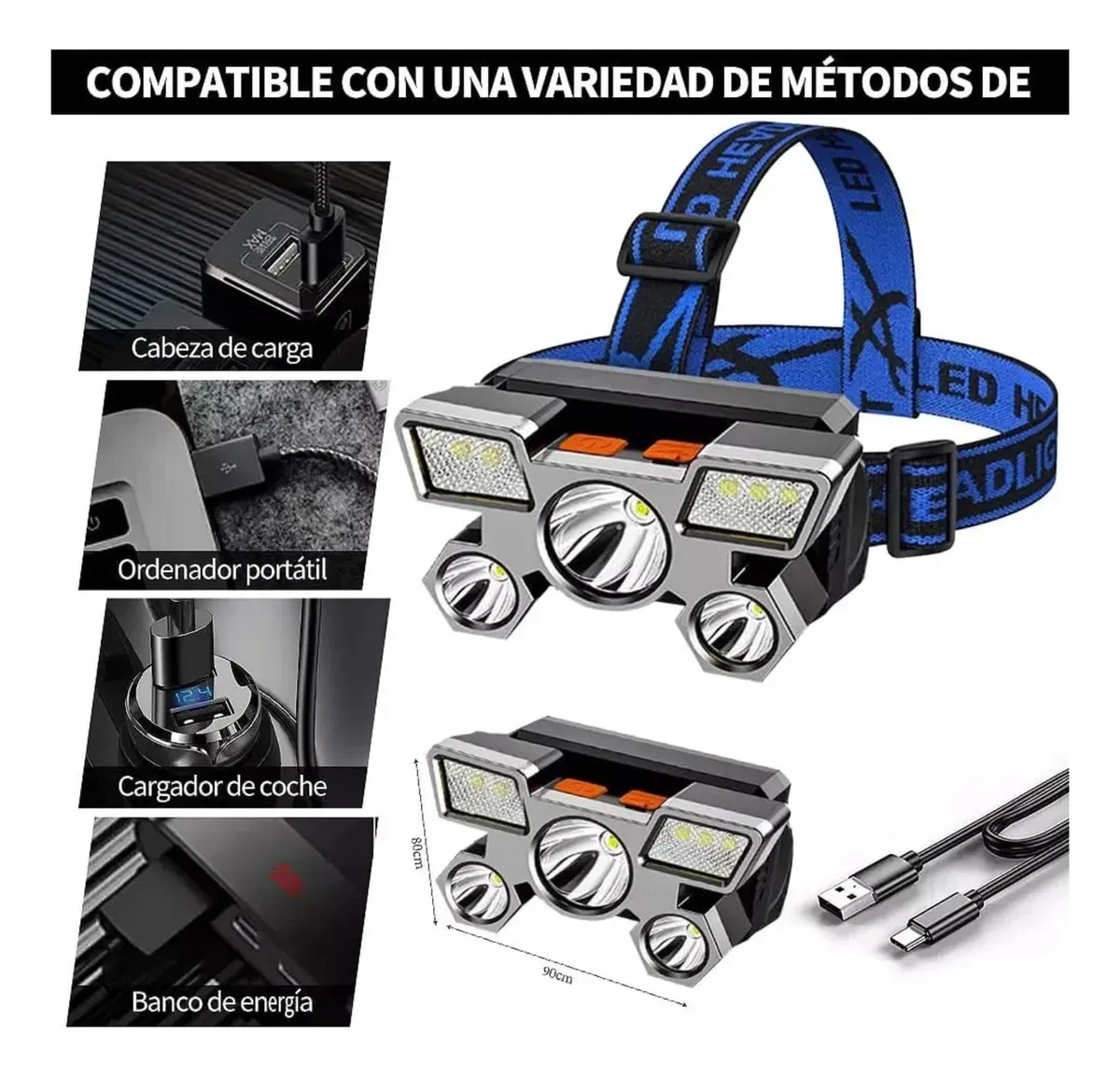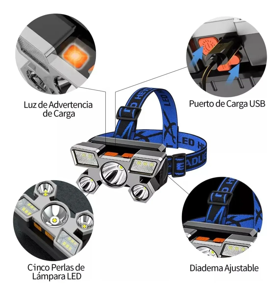 - Diseño: Incluye una vincha ajustable y cabezal inclinable para dirigir el haz de luz.
