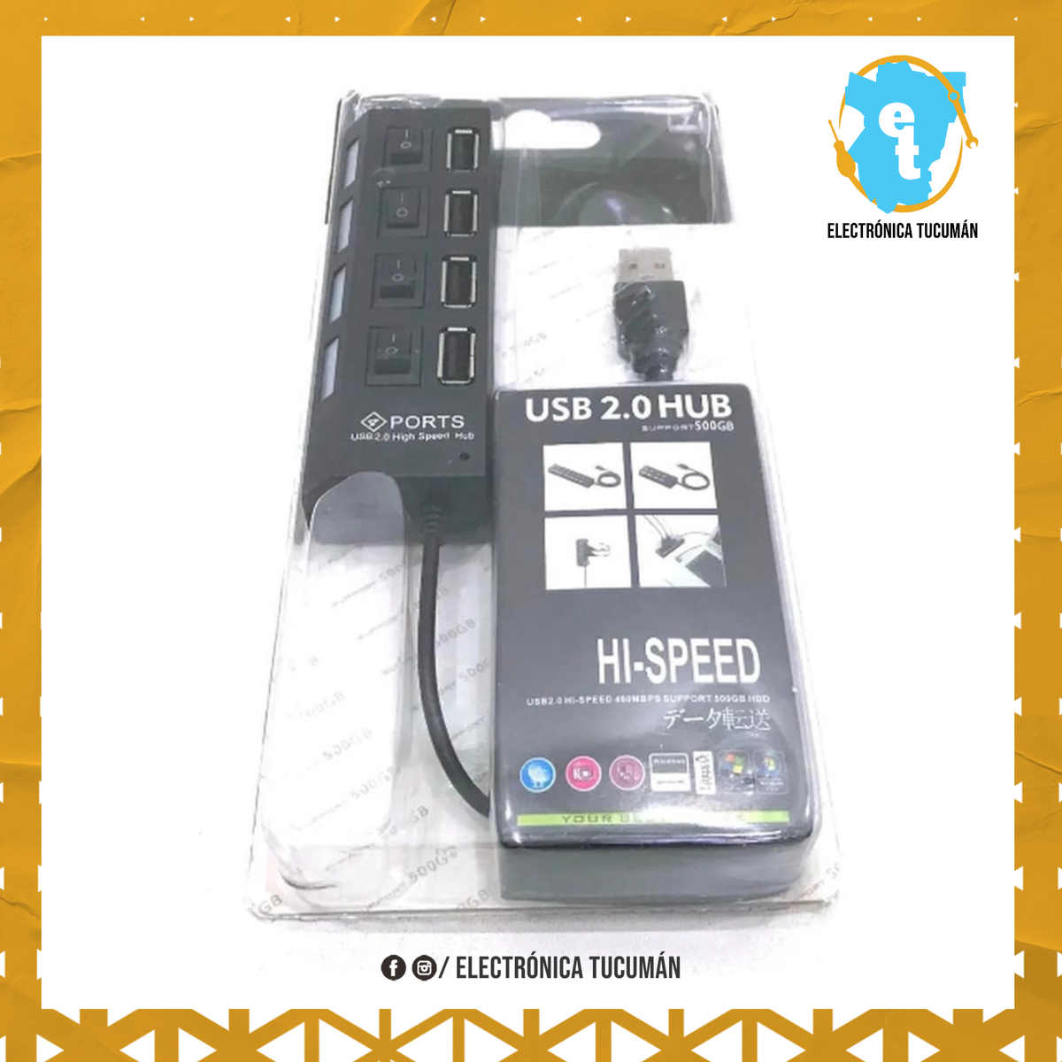 HUB USB 2.0 DE 4 PUERTOS, PLUG AND PLAY. Los cuatro puertos USB le permite conectar múltiples periféricos al mismo tiempo, como un mouse, teclado, lector de tarjetas, cámaras digitales y otros dispositivos. ESPECIFICACIONES – Compatible PC (Windows) y Mac (OS) – Velocidad máxima de transferencia de datos: 480 mbps. – Longitud Del Cable: 1 metro – Color: Negro – Conector A x 4: USB estándar tipo A hembra – Conector B x 1: USB estándar tipo A macho – Compatible Con Especificación USB: 2.0 y 1.1 – No requiere instalación de controlador.