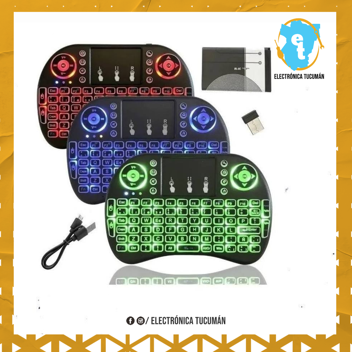 Excelente mini teclado inalambrico que te brinda una gran comodidad a la hora de usar tus equipos multimedia. Gracias a su tecnología inalámbrica de Nano receptor USB solo de conectar y listo ! podrás tener el control del dispositivo al que lo conectes. CARACTERISTICAS: – 3 colores seleccionables Presionando FN + F2 – Batería recargable. – Compatible con todos los sistemas operativos. ANDROID; IOS; WINDOWS; LINUX. – Sistema de ahorro de batería. – Conexión Plug and Play – Con Toch Pad – Alcance maximo de uso: 10 Mts.