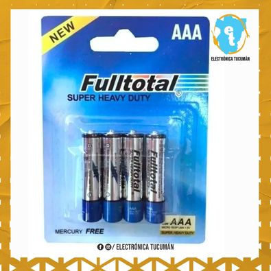 ESPECIFICACIONES TECNICAS: -Marca: Fulltotal -Modelo: AA -Tipo: Carbon -Voltaje: 1,5V QUE INCLUYE El producto se entrega en blister cerrado e incluye 4 pilas AA.?
