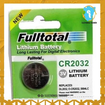 -Marca: Fulltotal -Modelo: CR2032 -Tipo: Boton litio -Voltaje: 3V -Dimensiones: 20mm x 32mm.