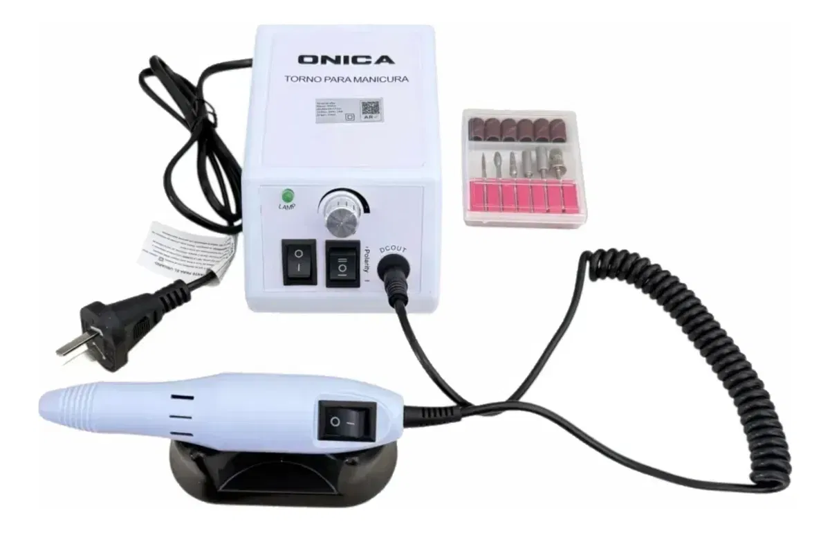 Incluye un kit de fresas diamantadas para tallar, pulir y modelar las uñas.