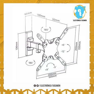 Soporte de pared para TV de movimiento completo Rango: Economía Material: Acero, plástico Espesor de chapa: Panel de pared de 2.5 mm, conexión de 2 mm (Panel de pared de 0.098 ", conexión de 0.079") Tamaño de la tubería: 30x15x1.5mm (1.2 "x0.59" x0.059 ") Acabado superficie: Recubrimiento en polvo. Color: Negro mate. Dimensiones: 190x220x220mm (7.5 "x8.7" x8.7 ") Tamaño de pantalla : 13 "-42" Patrón de montaje: Solo VESA VESA Compatible: 75x75,100x100,200x100,200x200 Max VESA: 200x200mm Capacidad de peso: 20 kg (44 libras) Fuerza probada: 2 veces aprobado Perfil: 60 ~ 190 mm (2.4 "~ 7.5") Rango de inclinación: +5°~-12° Rango de giro: +90°~-90° Nivel de pantalla: +3°~-3° Pantalla inclinable: Sí Instalación: Pared sólida, perno simple Tipo de panel: Panel desmontable Tipo de placa pared: Placa de pared fija Mantenimiento cable: Sí