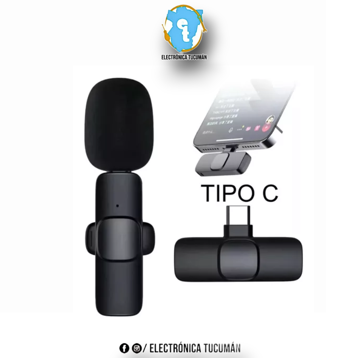 Micrófono Corbatero de solapa inalámbrico con conexión USB tipo C/ Iphone