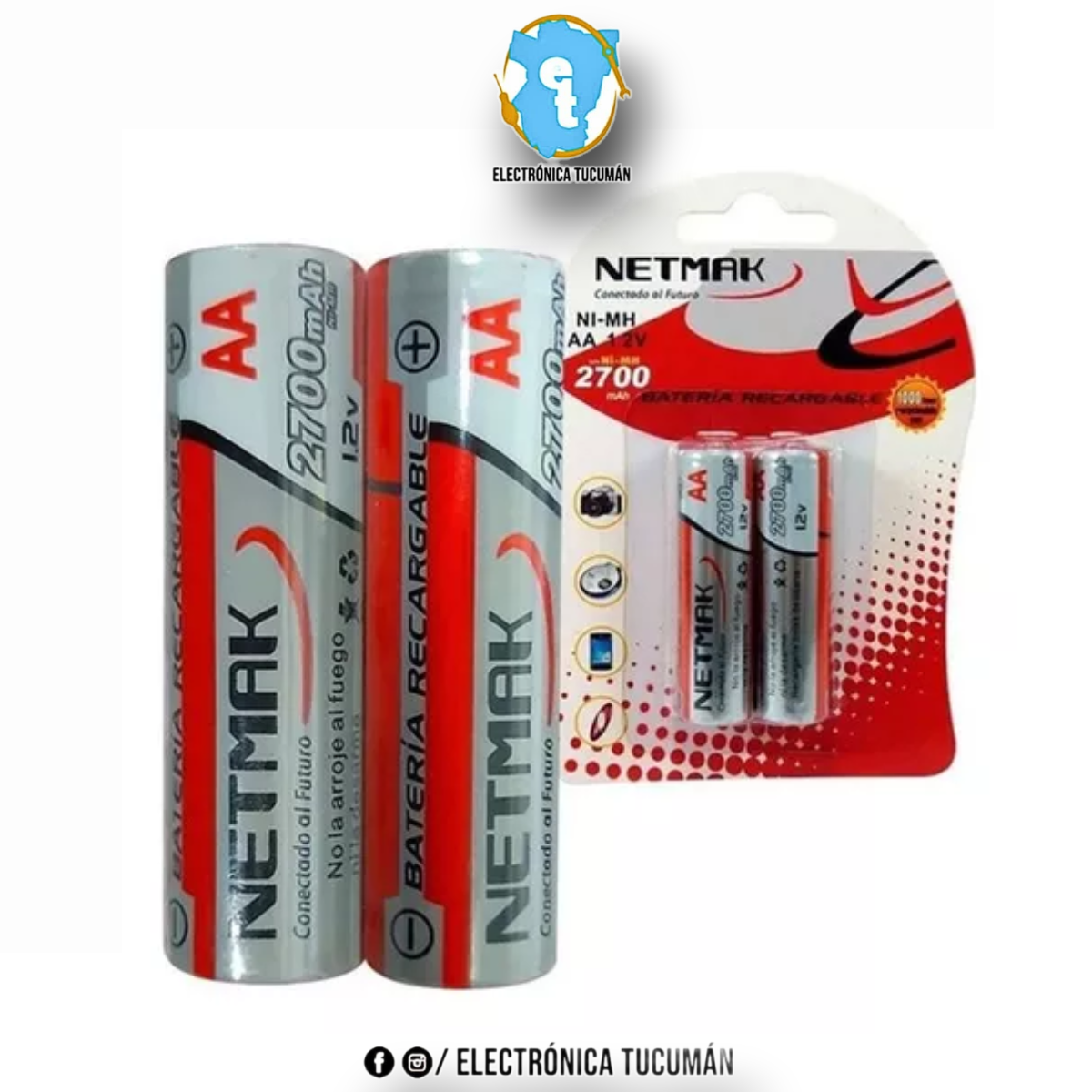 PILAS RECARGABLES DOBLE AA NETMAK 2700MAH 1.2V BLISTER X 2U