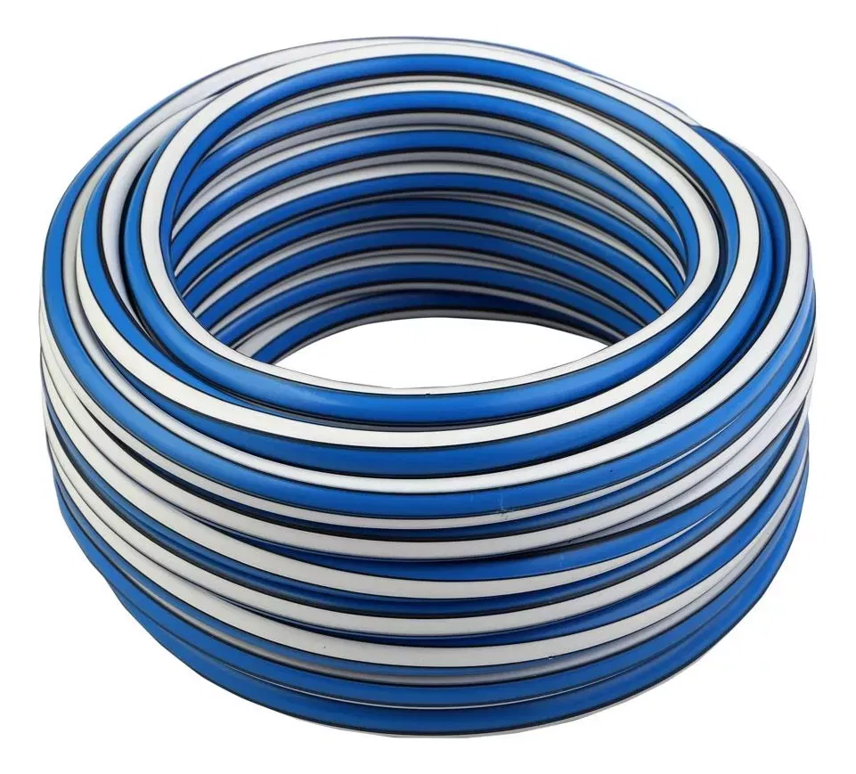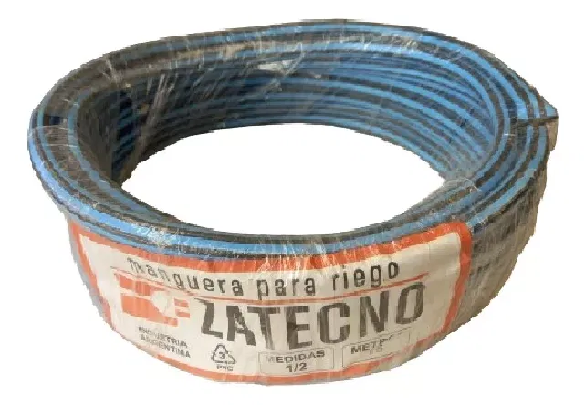 - Manguera de alta flexibilidad fabricada con PVC. Exterior presentado en bandas decorativas de varios colores (azul y blanco) y nervios longitudinales que permiten gran maleabilidad, interior negro. Resistente a los rayos UV y apta para la intemperie. - Temperatura de trabajo 2 °C a 60 °C.