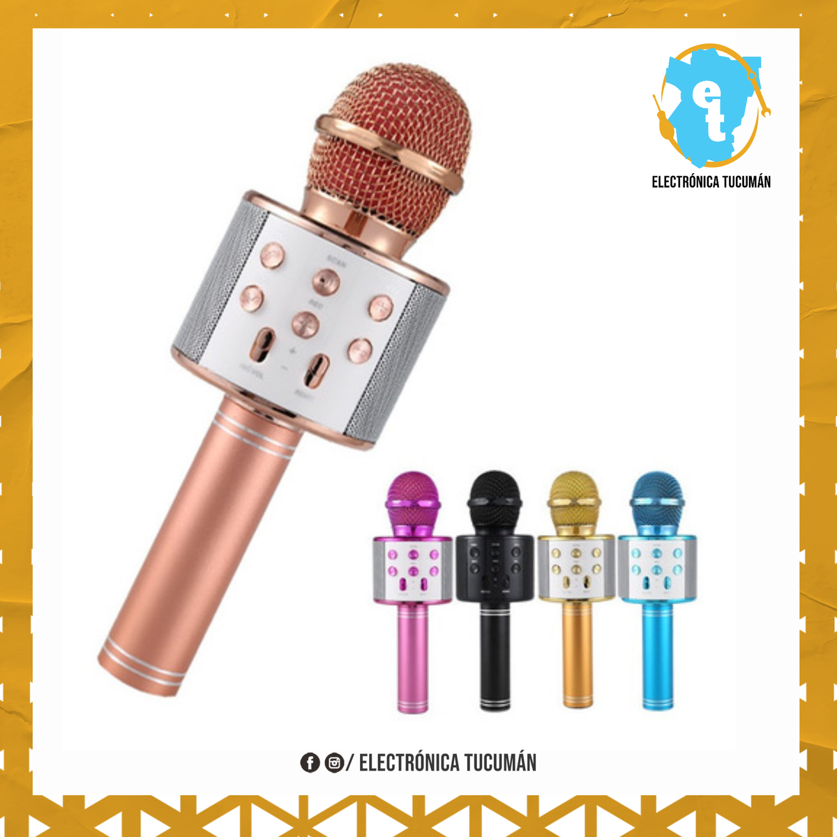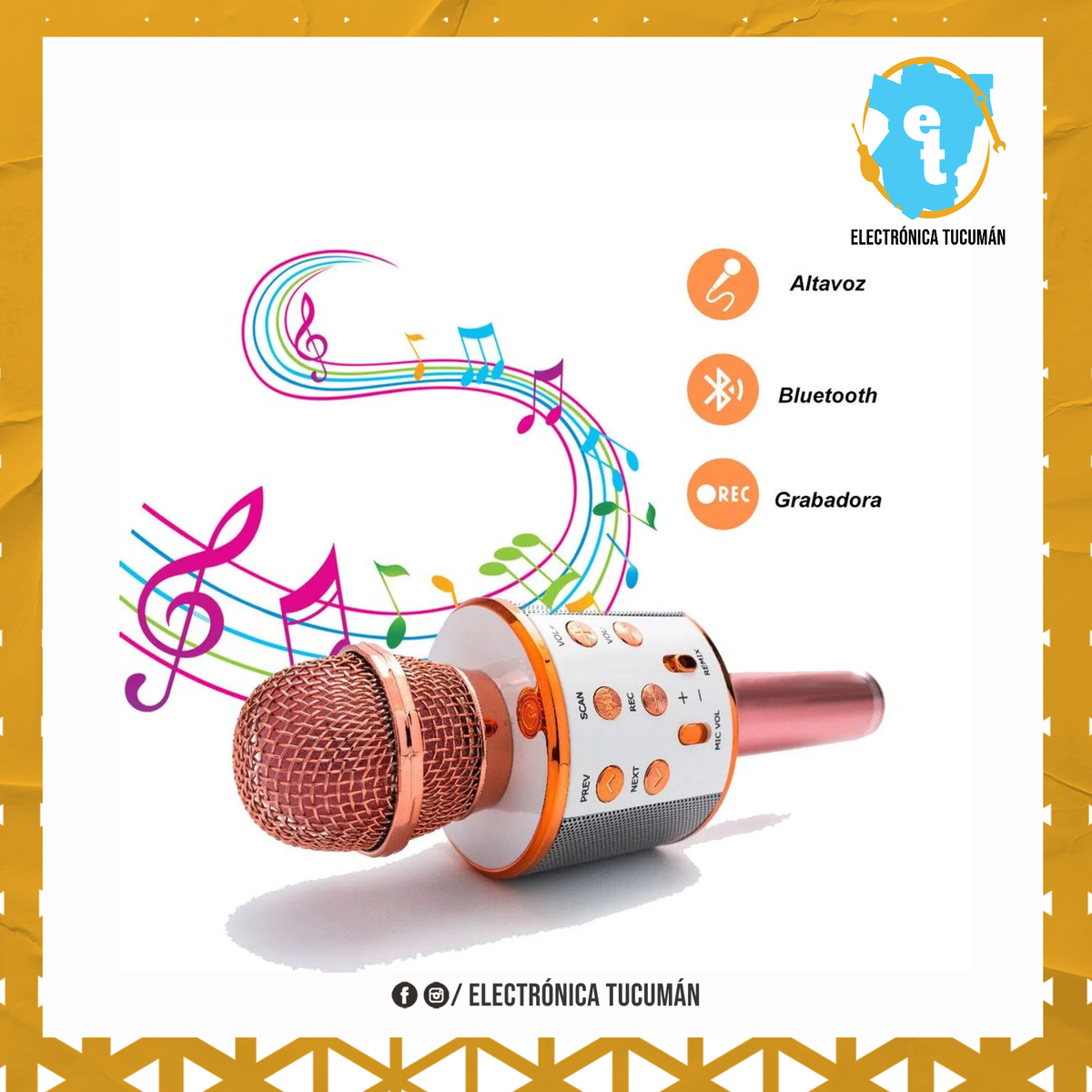 MICROFONO KARAOKE NIÑOS 5W INALAMBRICO BLUETOOTH EFECTOS DE VOZ PARLANTE REPRODUCTOR .Ideal para karaoke en reuniones o cumpleaños tanto de adultos como de niños. Puede amplificar la voz y también reproducir música a la vez. .El Micrófono Bluetooth incorporado se puede conectar a cualquier fuente habilitada para Bluetooth (teléfono inteligente, iPhone, iPad, tableta, automóvil, PC y más). También puede reproducir desde Entrada USB o SD. .Regulación individual de volumen de voz y música. Efecto ECO incorporado (opcional). También cuenta con un distorsionador de voz: Tipo Ardilla, Alien o Fantasma CÓMO UTILIZAR: 1. Cargar la batería del producto por 4 horas. 2. Enciende el interruptor ON/OFF. Presionar durante al menos 5 segundos. 3. Activa el bluetooth del teléfono y busca el micrófono (WS858). 4. Abrí la aplicación de música karaoke que desees: a. Botón Prev. para canción anterior. b. Botón Next, para siguiente canción. c. Botón Play/pausa- Scan para reproducir o pausar d. Botón Vol+ para aumentar el volumen de la música y Vol- para disminuirlo. 5. Ajusta el efecto que quieras! 4 modos. a. Mantener presionado 2 segundos el botón Mic/Replay para cambiarlos. b. Un solo click en el boton Mic/Replay para apagar o encender la voz. 6. Ajusta el volumen de la voz con la tecla Mic Vol: arriba para mas volumen, y abajo para menos. 7. Podes mejorar tu vos y darle eco con la perilla Remix! 8. ¡Empieza a cantar y diviértete!