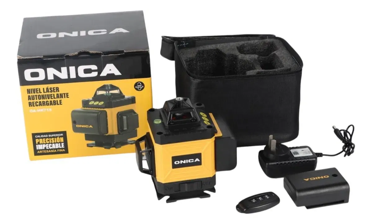 El Nivel Láser Autonivelante Recargable es la herramienta perfecta para quienes buscan precisión y eficiencia en sus proyectos. Con una notable precisión de 10 mm/m, garantiza resultados exactos en cualquier trabajo de construcción, albañilería o decoración. Este modelo OA-HR715 cuenta con 16 líneas de láser en color verde, lo que proporciona una visibilidad excelente incluso en condiciones de luz brillante. Su alcance máximo de 30 m y su rango de temperatura operativo de -20 a +40 grados hacen de este nivel láser una opción versátil para diversas aplicaciones. Incluye un práctico bolso de transporte, un cargador y un control remoto, que permiten un uso cómodo y accesible. Además, sus dos baterías aseguran un rendimiento prolongado, convirtiéndolo en un aliado ideal para profesionales y aficionados al bricolaje por igual. Adquiere el Nivel Láser ONICA y eleva la calidad de tus proyectos al siguiente nivel.